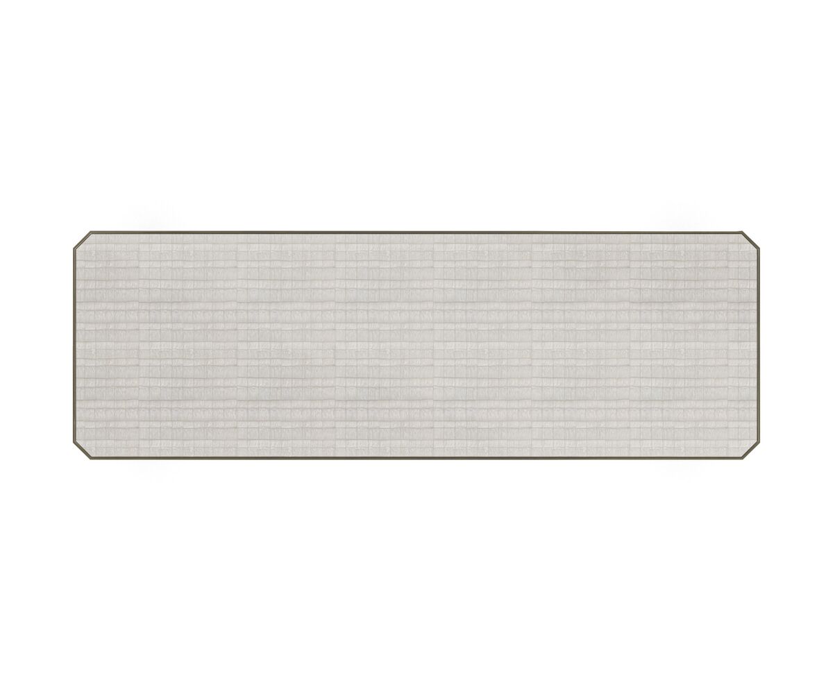 Perfect Together - это консоль, которая воплощает непринужденную роскошь в визуально и тактильно привлекательной монохроматической палитре. Ее элегантный обтекаемый дизайн включает раму с отделкой из матовой античной латуни, украшенную коническими ножками, покрытыми металлическими наконечниками глубокой бронзы, придавая ей дополнительную выразительность. Поверхность консоли покрыта блестящим акрилом и смолой, которые вручную проштампованы, создавая узоры в кремовых и алебастровых тонах. Стиль этой консоли позволяет использовать ее как диван-стол или разместить в холлах и прихожих, добавляя изысканность и элегантность в интерьер.