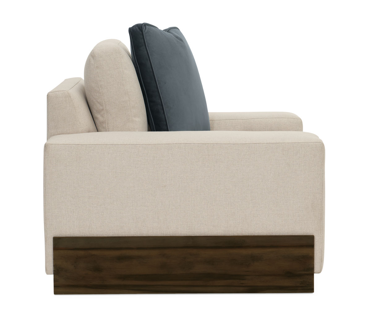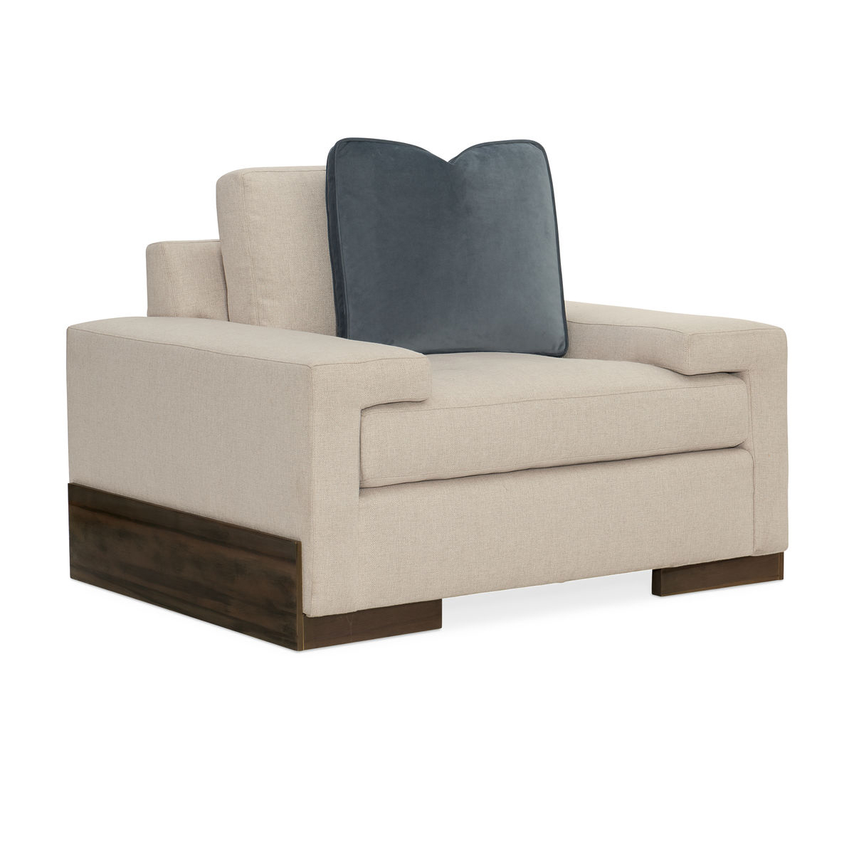 Кресло также дополнено акцентной подушкой изысканного сланцево-синего оттенка, выполненной из бархата. Эта подушка добавляет изысканности и придаёт креслу стильный акцент.