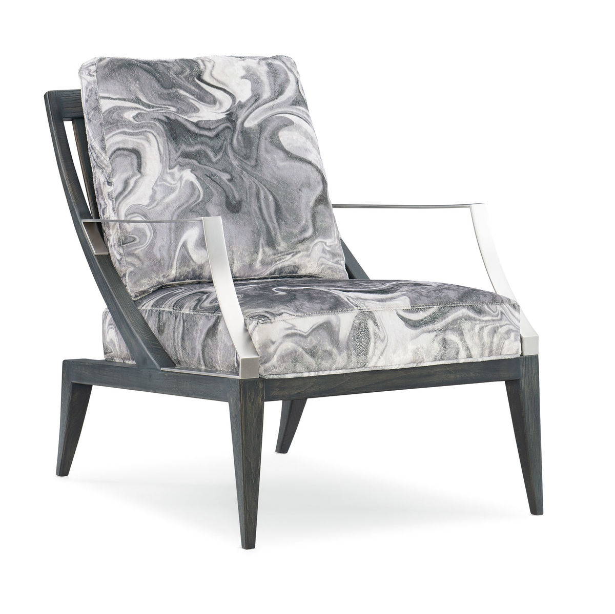 Кресло имеет очаровательную отделку в цвете "угольный уголь" и "современный никель", которая добавляет элемент современной изысканности в любую комнату. Эта комбинация цветов и отделок придает креслу утонченный и стильный вид, который привлекает взгляды и создает атмосферу элегантности.
