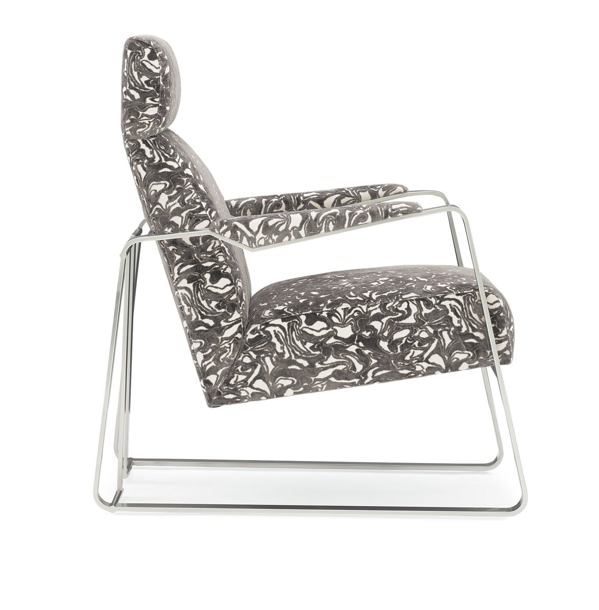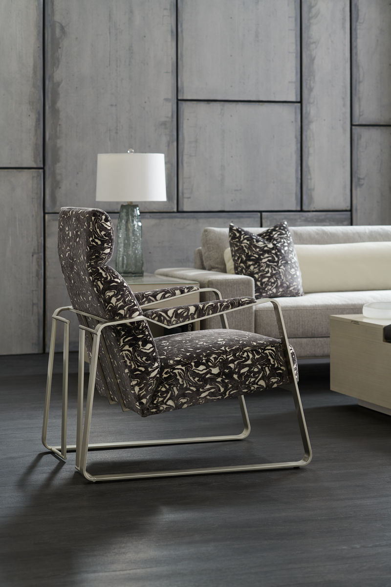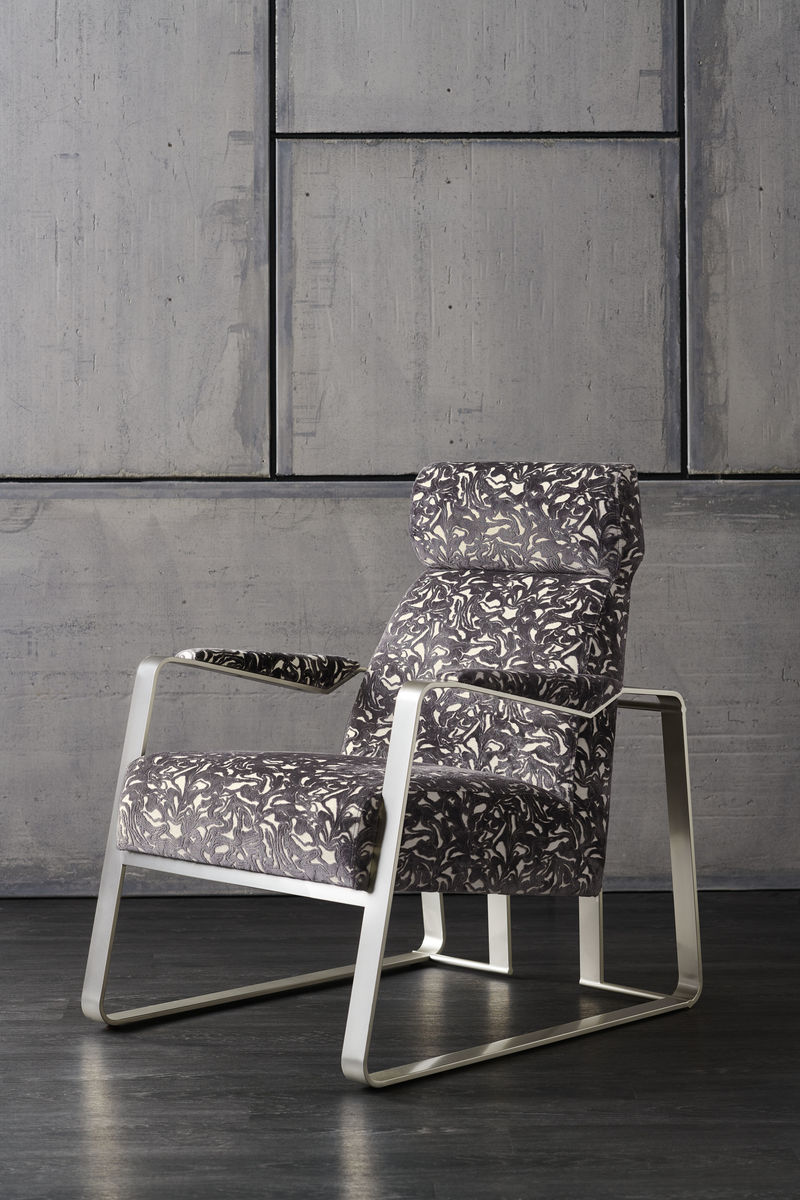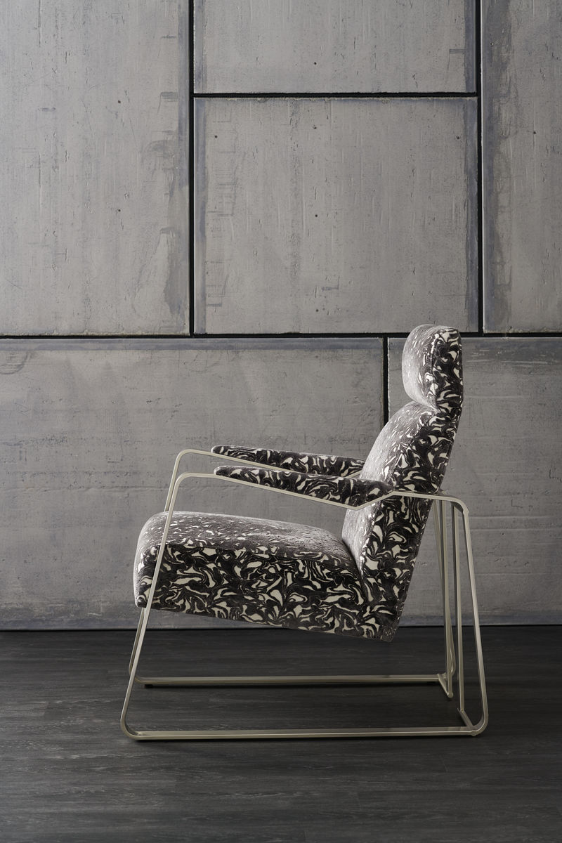 Отделка из современного никеля подчеркивает изящные линии силуэта кресла и придает ему элегантный шарм. Эта деталь добавляет современности и стиля, делая кресло Exposition по-настоящему впечатляющим.