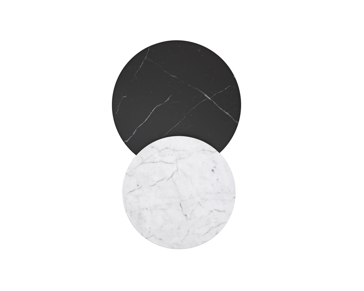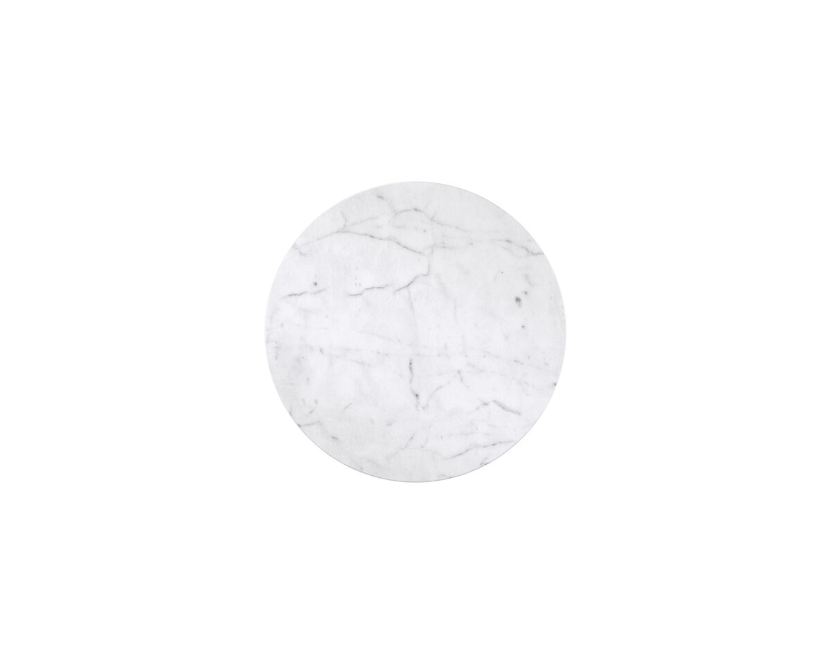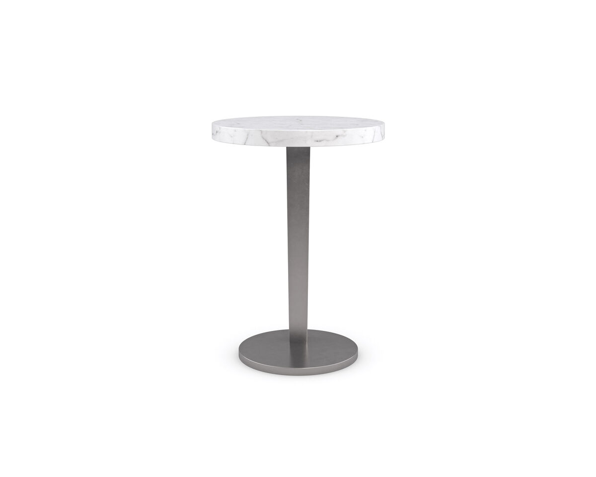Легко перемещаемый боковой столик La Moda, выполненный из металла и камня, отличается глубиной и элегантностью. Гладкое металлическое основание в цвете дымчатой нержавеющей стали дополнено белым каррарским мрамором. Используйте его отдельно или в паре с коротким столиком La Moda для создания многомерной поверхности для напитков и демонстрации.