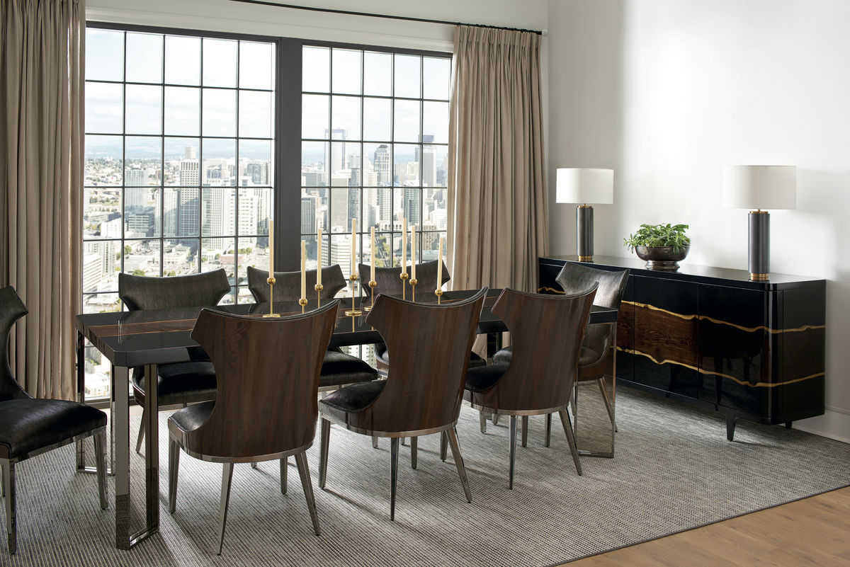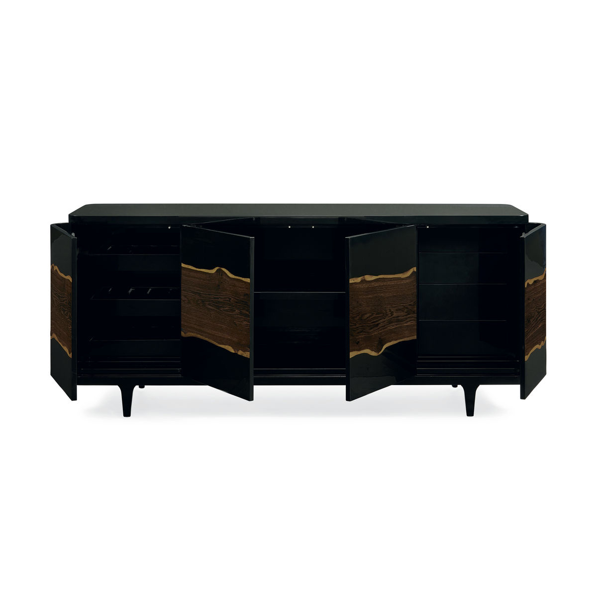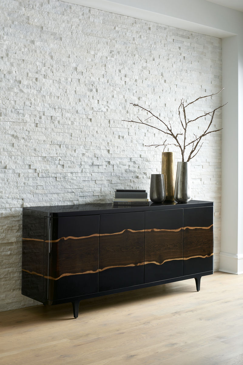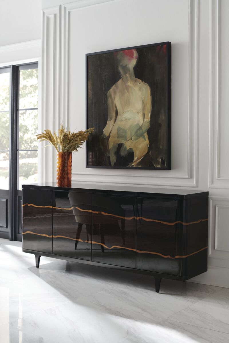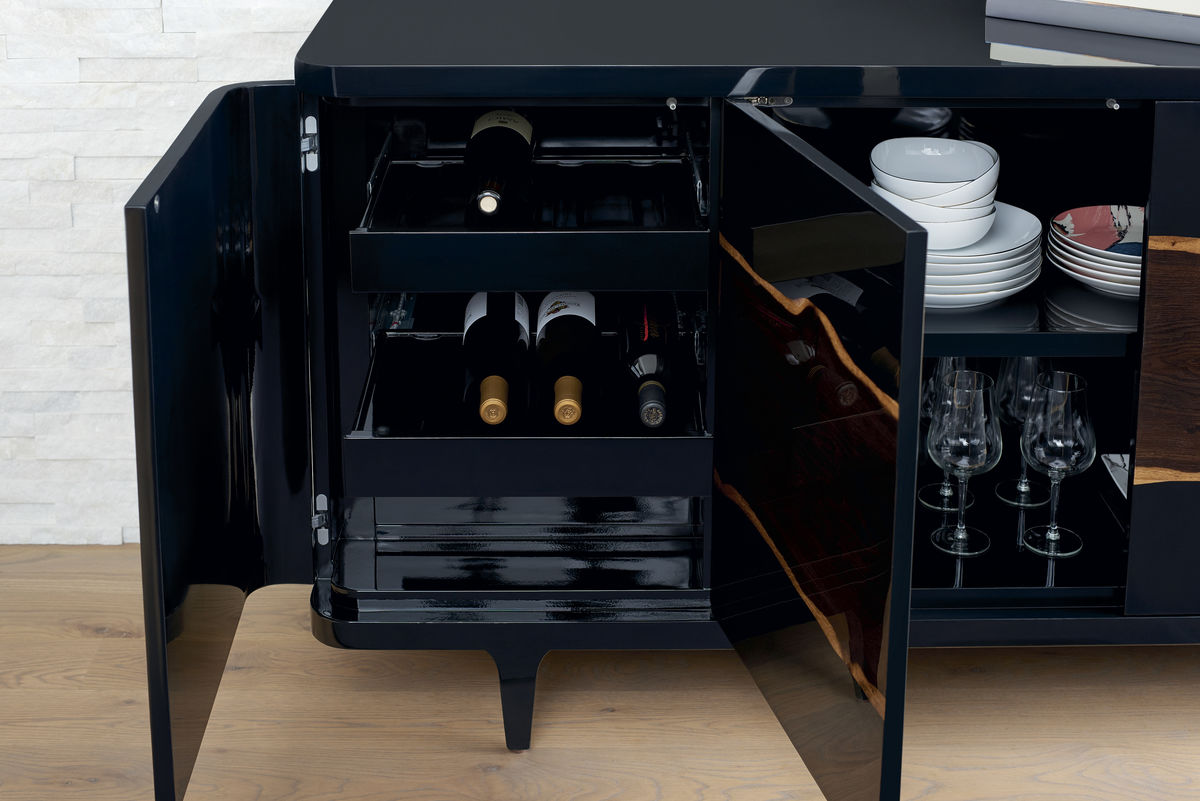 Этот буфет The Naturalist восхваляет непередаваемую красоту дубовой древесины. Его корпус Piano Black украшен живописной полосой мореного дуба с живым краем, которая изящно обвивает весь фасад. На трапециевидных ножках, приподнятых над полом, этот буфет станет центральным элементом любой комнаты, которая заслуживает внимания. Искусно организуйте все необходимое для развлечения за четырьмя изогнутыми мягкими дверцами, которые скрывают три выдвижные полки для вина, регулируемую полку для хранения и четыре ящика.