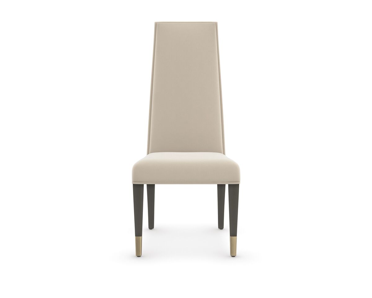 Обеденный стул The Masters в стиле высокой моды создан, чтобы встречать гостей и придавать вашему пространству величественный вид. Его угловатые линии и высокая зауженная спинка придают ему неповторимый стиль, а бархатное обивочное материал кремового оттенка не только выглядит роскошно, но и обеспечивает максимальный комфорт. Несмотря на внушительные размеры, этот стул легко вписывается в интерьер, добавляя нотку уютной роскоши.