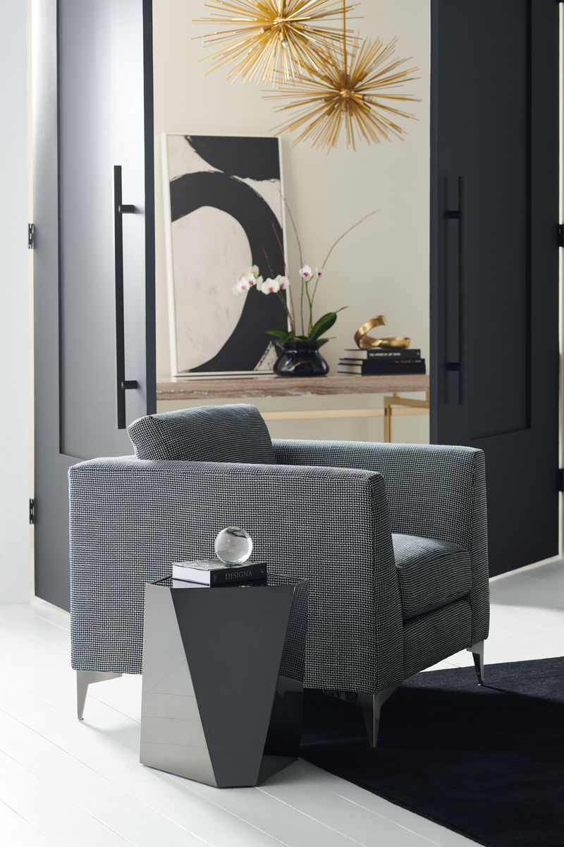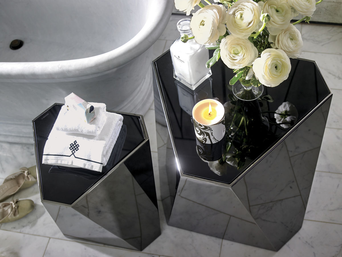 Отличительный дизайн бокового столика The Contempo призван привлечь внимание и дополнить помещение. Его современная эстетика добавляет особый акцент к декору благодаря необычным углам этого шестиугольного столика. Основание в глубоком бронзовом оттенке прекрасно сочетается со столешницей из черного стекла. Разместите его рядом с креслом или диваном, либо создайте художественную композицию, сгруппировав несколько столиков вместе. Представлены два размера для вашего выбора.