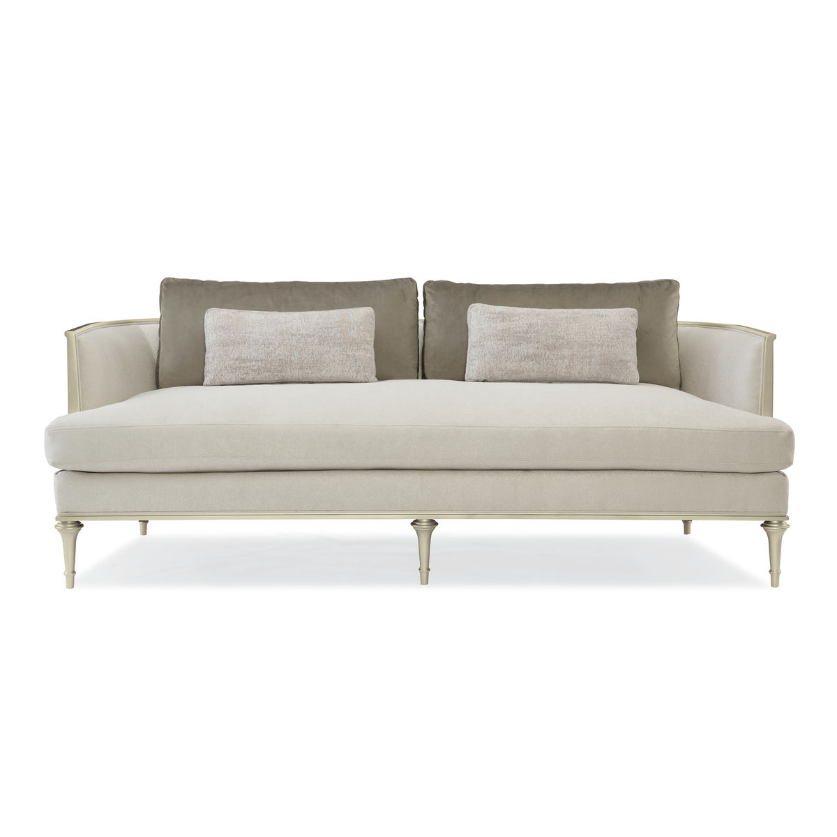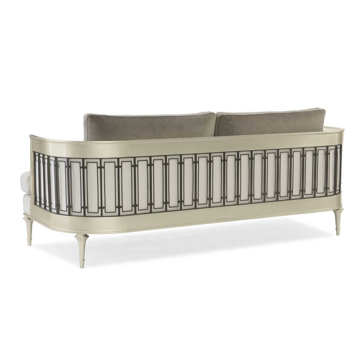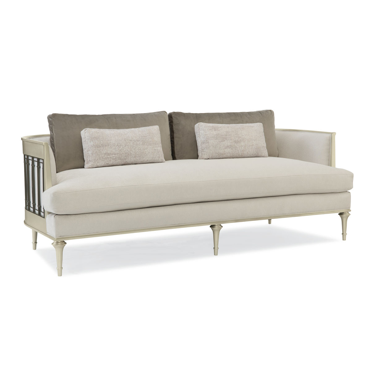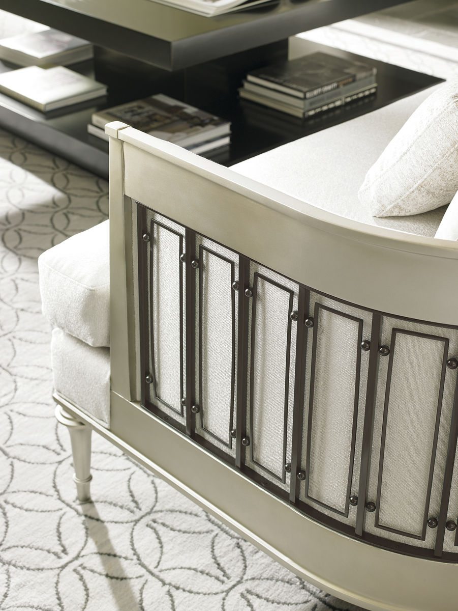 Этот стильный диван олицетворяет Caracole и привносит свежесть и чистоту в любое помещение. Уникальные элементы из вольфрамового металла, вдохновленные железными воротами, замеченными во время наших путешествий, добавляют интересный акцент. Приглушенная мужская палитра, включающая серые и нейтральные оттенки, и изящная отделка с платиновым эффектом, придают этому вдохновенному силуэту современный вид. Диван обтянут ярким белым букле и украшен мягкими серыми бархатными подушками, а также роскошными декоративными валиками с оригинальным грубым плетением и белым линейным рисунком, вдохновленным заснеженными горными вершинами. С его привлекательными деталями на 360 градусов, этот диван идеально впишется в любое помещение.