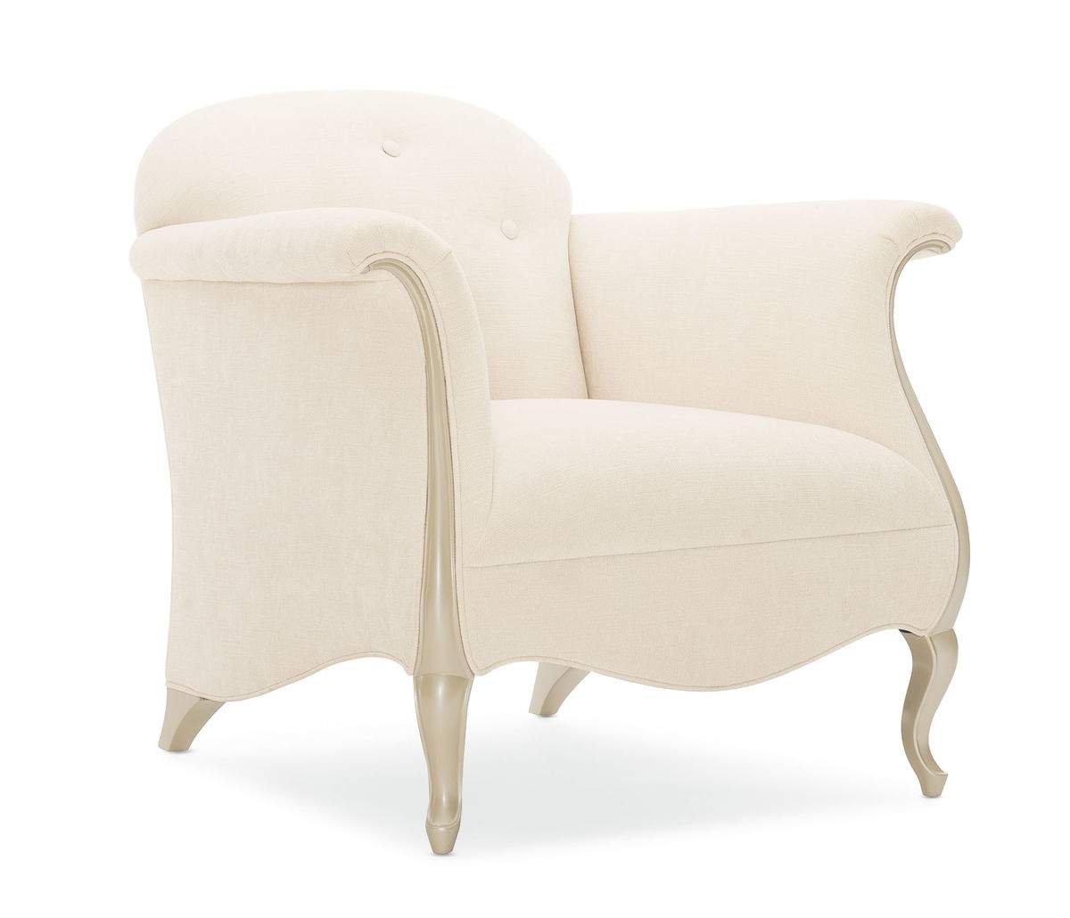 Чувственно пышный покрой кресла подчеркнут тафтингом на пуговицах и изысканно мягкой тканью, создавая приятное ощущение комфорта и роскоши. Мерцающая перламутровая отделка дополняет эффектную деревянную вставку и изогнутые ножки, придавая креслу изысканность и блеск.