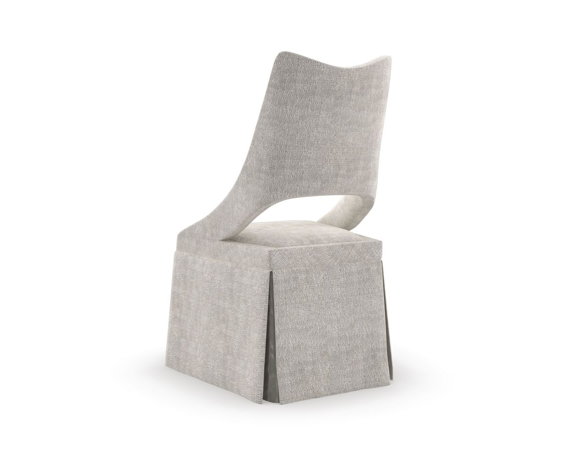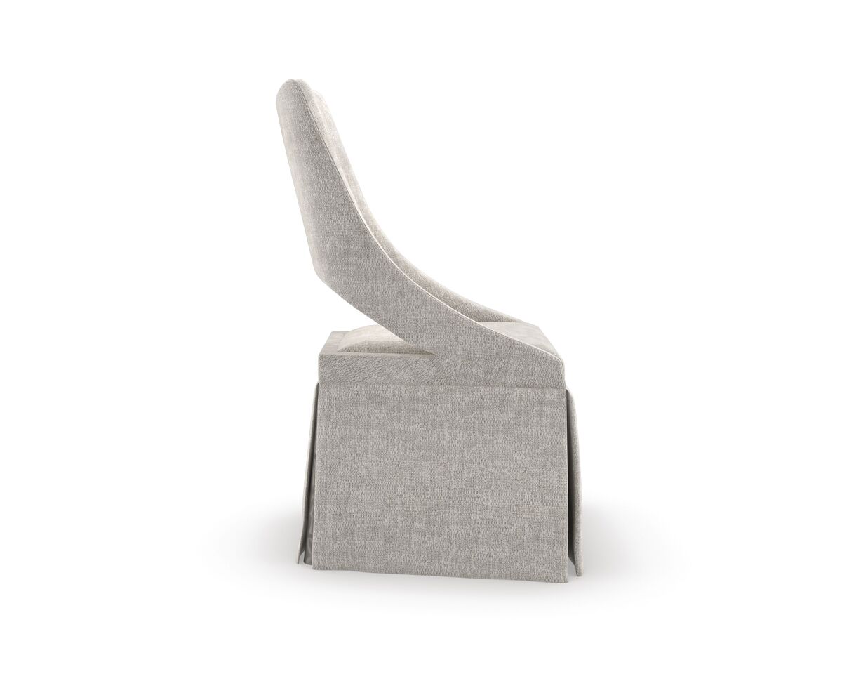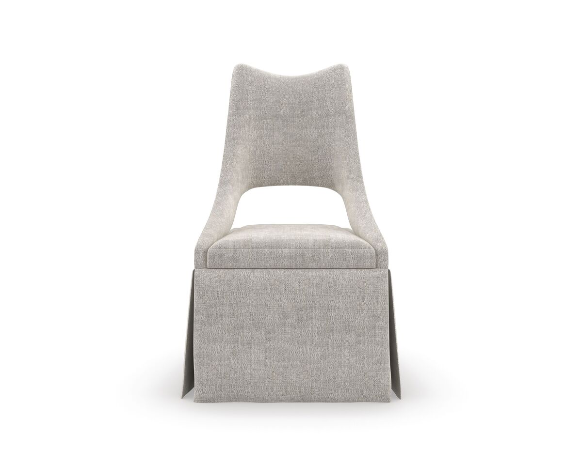 Однако, несмотря на свою роскошную внешность, кресло Roll With It также обладает функциональностью. Классический элемент дизайна - четко скроенная юбка-водопад с атласной нижней отделкой - не только создает изысканный контраст, но и ловко скрывает колесики, позволяя вам свободно перемещаться по помещению.