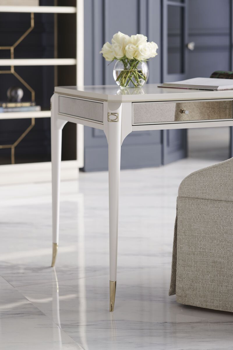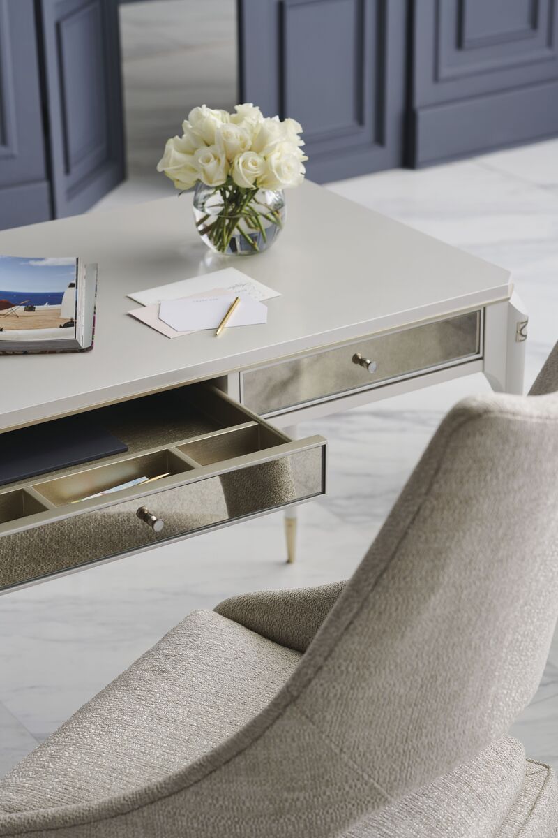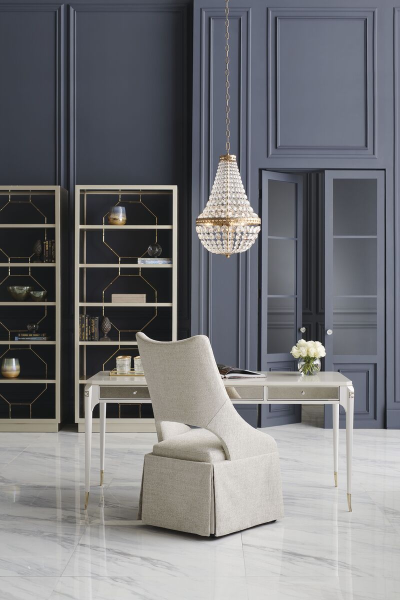 Однако, несмотря на свою роскошную внешность, кресло Roll With It также обладает функциональностью. Классический элемент дизайна - четко скроенная юбка-водопад с атласной нижней отделкой - не только создает изысканный контраст, но и ловко скрывает колесики, позволяя вам свободно перемещаться по помещению.