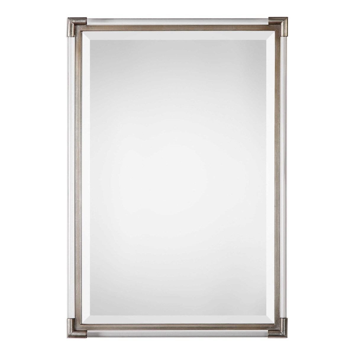 Зеркало Mackai от американского бренда Uttermost представляет собой произведение современного дизайна. Его металлическая рама, украшенная листовым серебром, окружена прозрачными акриловыми стержнями, создавая простое, но элегантное зеркало.