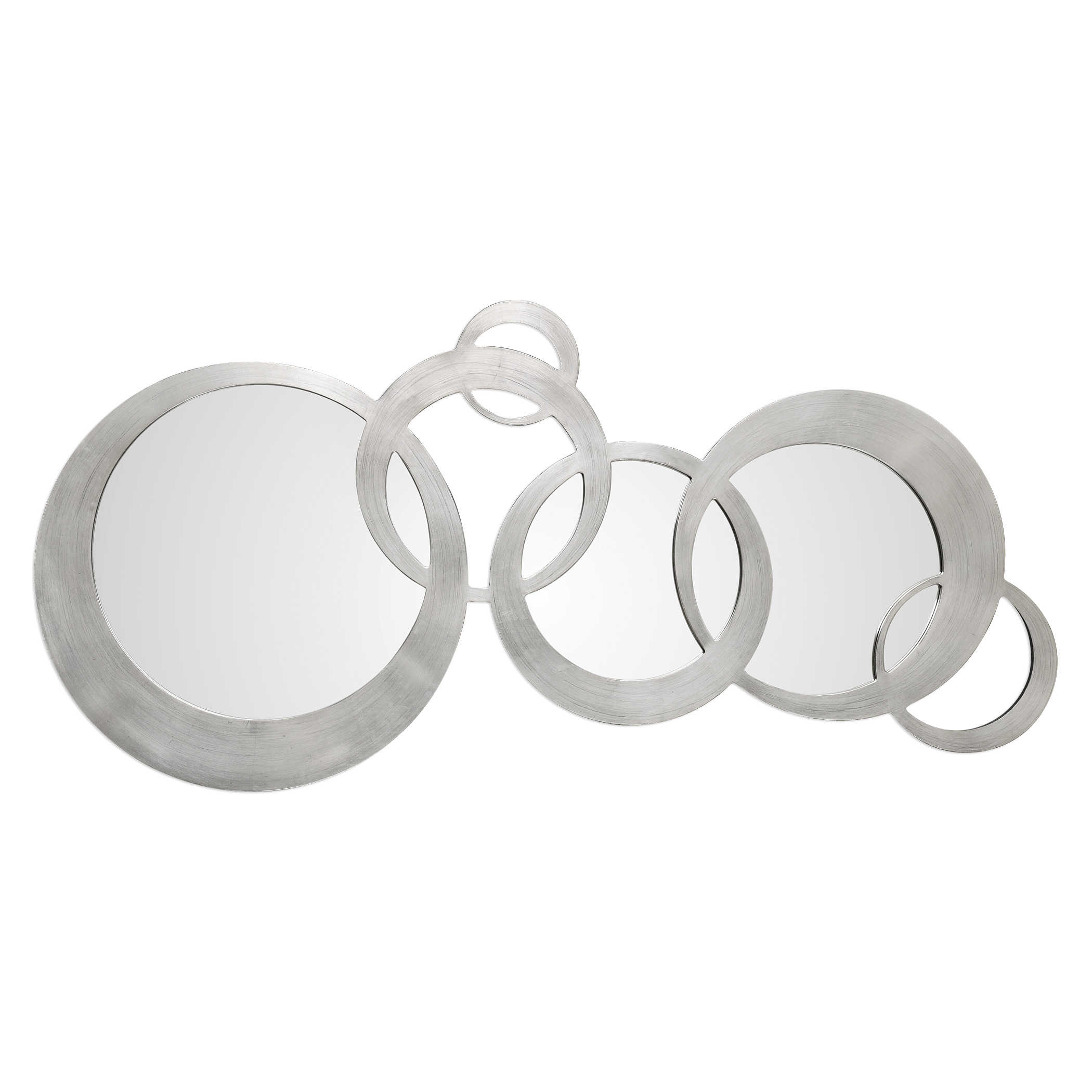 Зеркало Odiana от американского бренда Uttermost - это искусство, не поддающееся времени, с великолепным современным дизайном. Его каркас изготовлен из цельного дерева и представляет собой переплетение неровных колец, вручную отделанных слегка состаренным серебряным листом. Этот дизайн придает зеркалу уникальность и характер, делая его важным элементом в вашем интерьере.