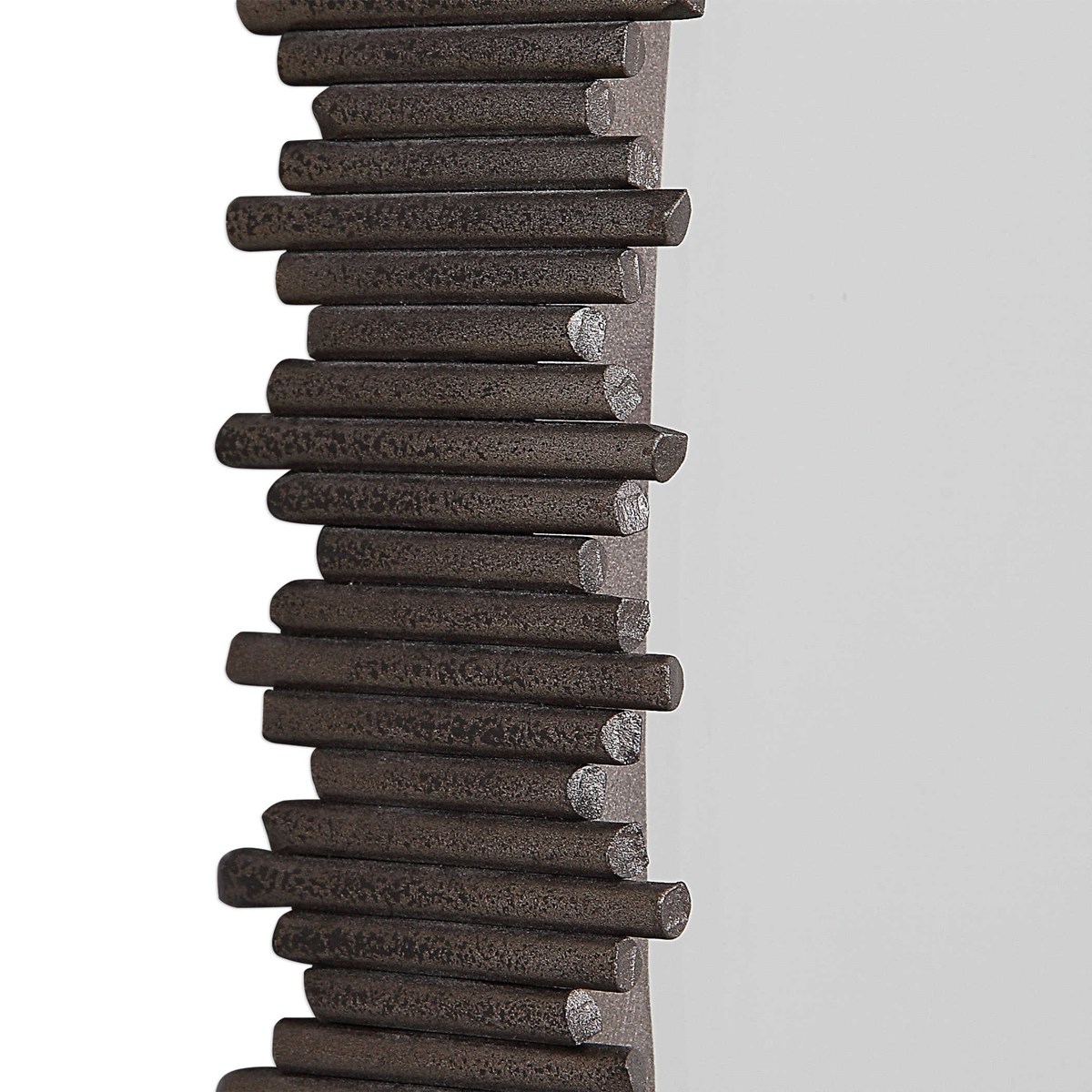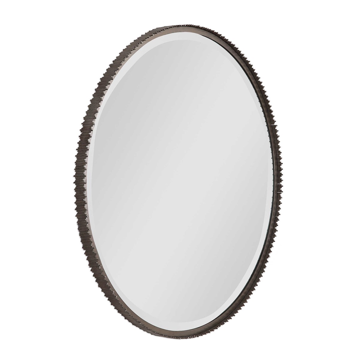 Зеркало Ada Round от американского бренда Uttermost - это выразительное трехмерное современное зеркало, которое придает интерьеру уникальный характер. Его уникальный дизайн включает в себя вырезанные вручную железные дюбеля различной длины, приваренные к внешнему краю рамы, которая отделана серебристой полированной сталью. Зеркало окружено значительным скосом шириной 3 см, придающим ему дополнительный объем и изящество. Это зеркало подчеркнет вашу индивидуальность и станет великолепным акцентом в любом помещении.