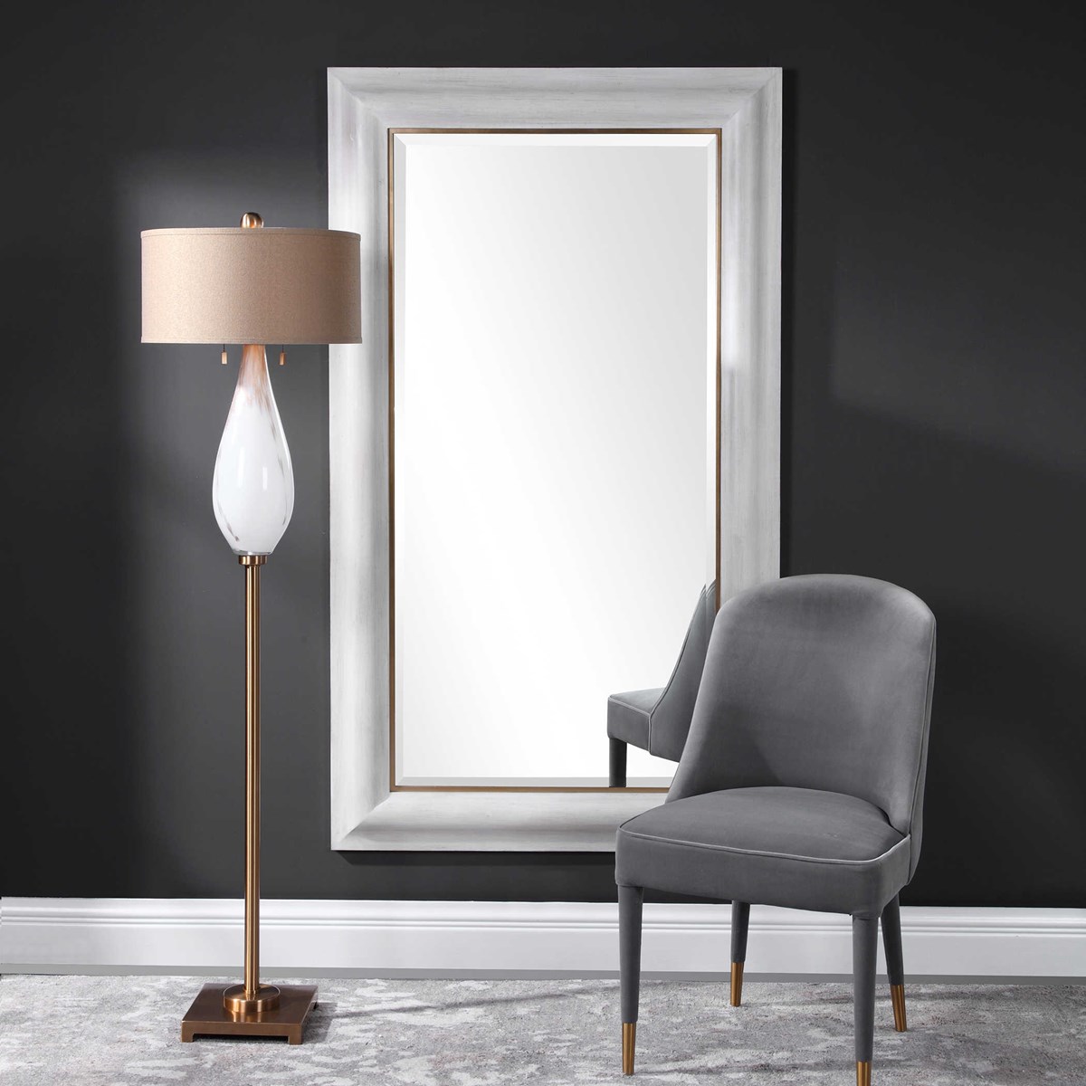 Зеркало Piper от американского бренда Uttermost - это истинное произведение искусства с изящной деревянной рамой, обладающей изысканными изгибами. Рама выполнена в состаренном белом цвете и украшена миниатюрной золотой внутренней подкладкой, придающей этому изделию неповторимый шарм. Скос зеркала составляет 3 см, и его можно устанавливать как горизонтально, так и вертикально. Piper - это искусство, которое подарит вашему интерьеру изысканность и непревзойденный стиль.