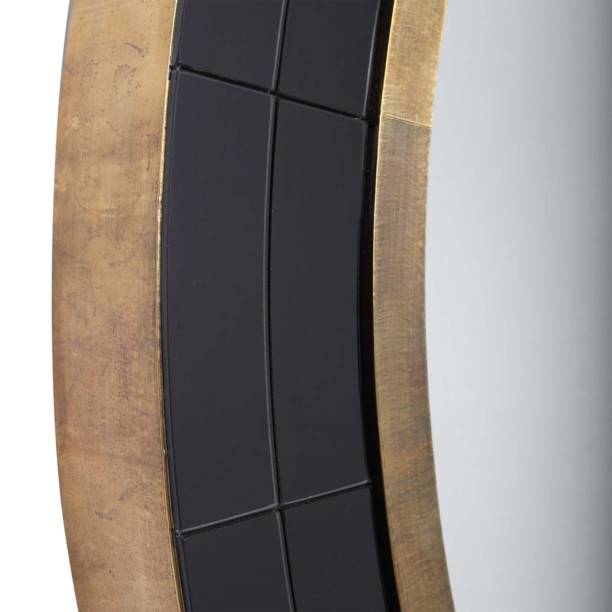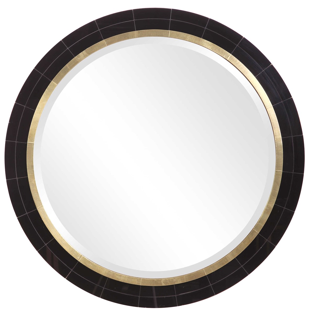 Зеркало Nayla Round от американского бренда Uttermost - это элегантное и стильное круглое зеркало, которое придаст вашему интерьеру изысканный вид. Его рама выполнена из черной зеркальной плитки, которая придает ему изысканность и таинственность. Металлический лист с античной латунной отделкой добавляет детали утонченности и роскоши.