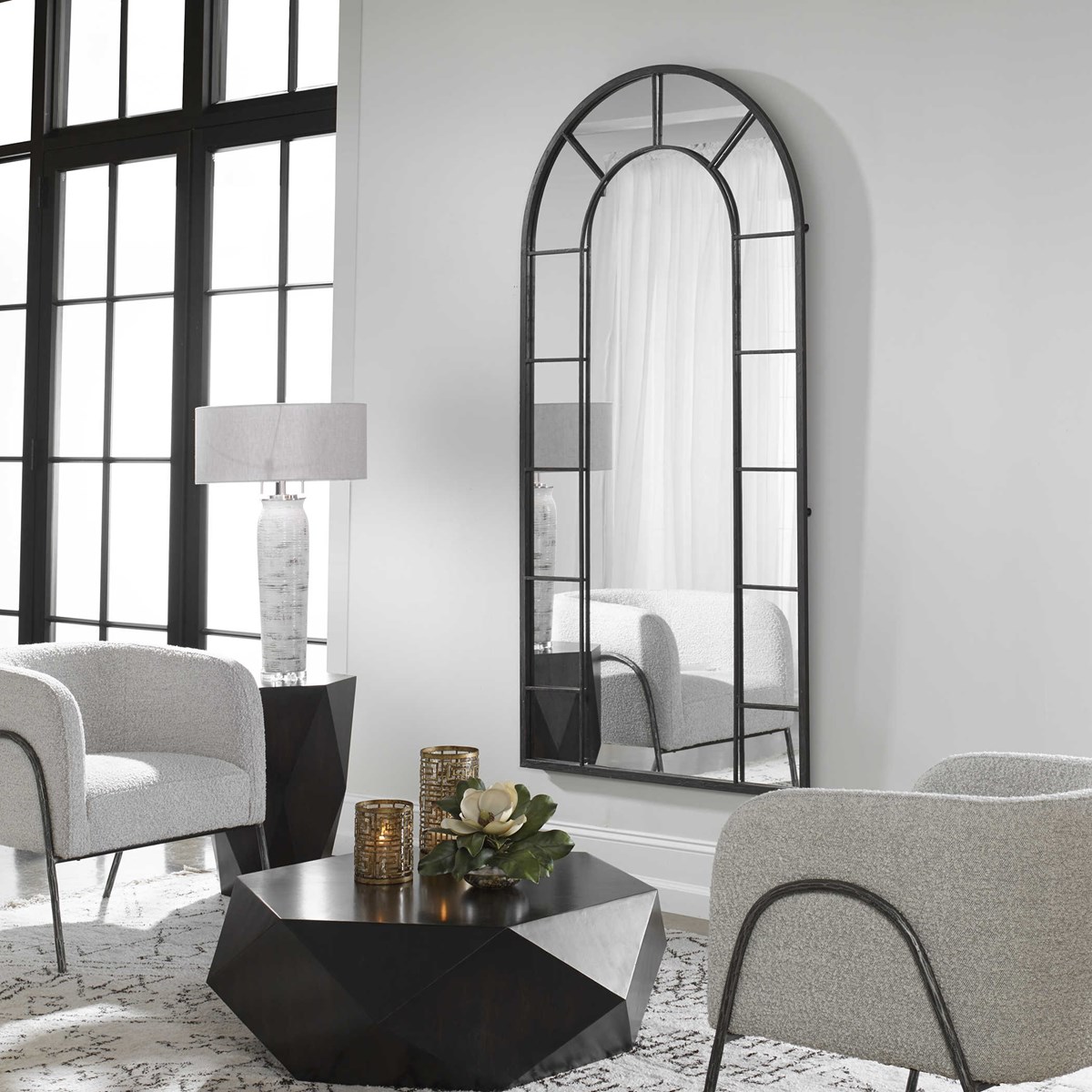 Зеркало Dillingham Arch от американского бренда Uttermost - это воплощение величества и элегантности. Его арочная форма придает интерьеру особый характер, а состаренная черная металлическая рама с нежной ржавчиной создает ощущение старины и добавляет шарма любому помещению. Это зеркало - не только функциональный предмет, но и настоящее произведение искусства, способное преобразить и украсить ваш дом.