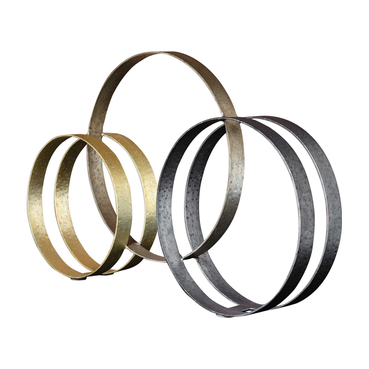 Массивные кольца из чеканного железа с отделкой из бронзы, античного серебра и золота - это великолепный настольный аксессуар от компании Adilynn, который привнесет шарм и элегантность в ваш интерьер. Каждое кольцо, мастерски выполненное из прочного железа, имеет внушительный и изысканный вид. Отделка из бронзы, античного серебра и золота придает им благородный и старинный вид, создавая эффектный контраст и привлекая внимание к деталям.