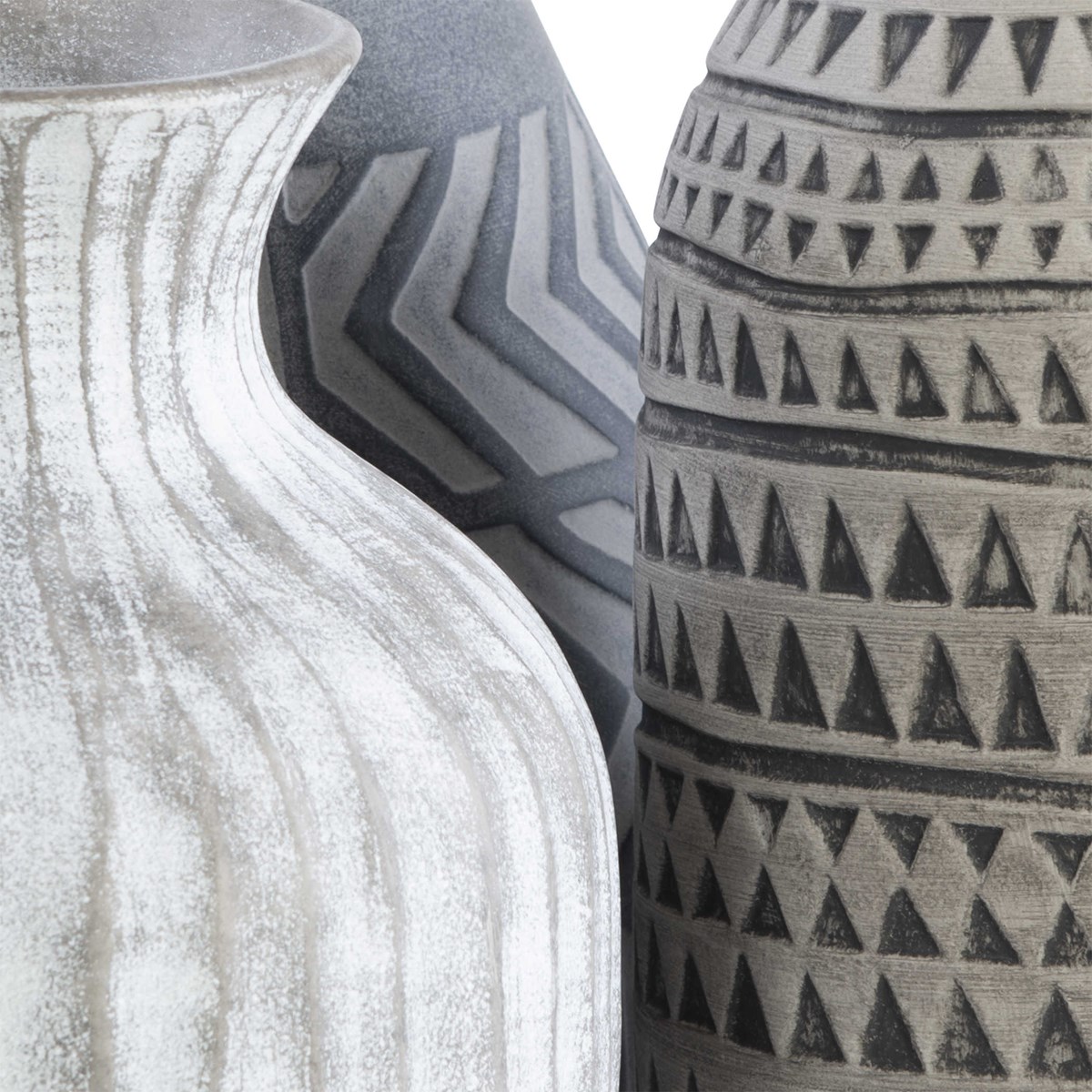 Набор из трех фаянсовых ваз Natchez станет изысканным украшением вашего интерьера. Каждая ваза имеет уникальный цвет - светло-серый, угольный и натуральный бежевый, а также вытравленные геометрические узоры, придающие им неповторимый стиль. Эти вазы могут использоваться как в помещении, так и на открытом воздухе, однако рекомендуется защищать их от низких температур.
