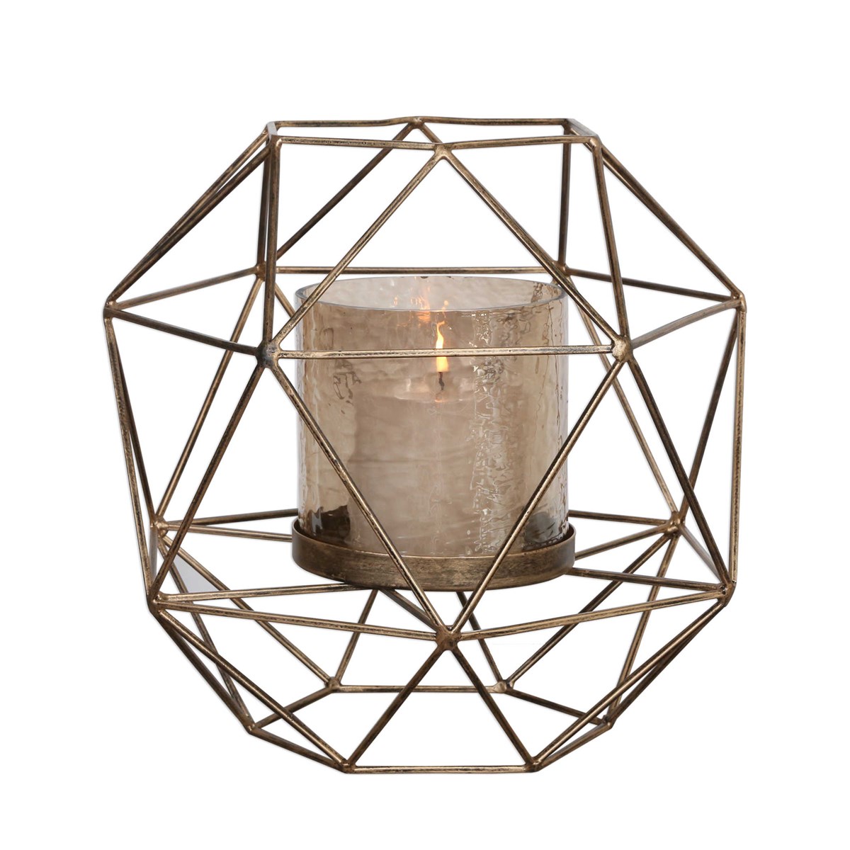 Подсвечник Myah — это настоящее произведение искусства, созданное из открытого железа с изысканным геометрическим узором, который утонченно отделан состаренным золотом. Его уникальный дизайн является пленительным сочетанием простоты и элегантности.