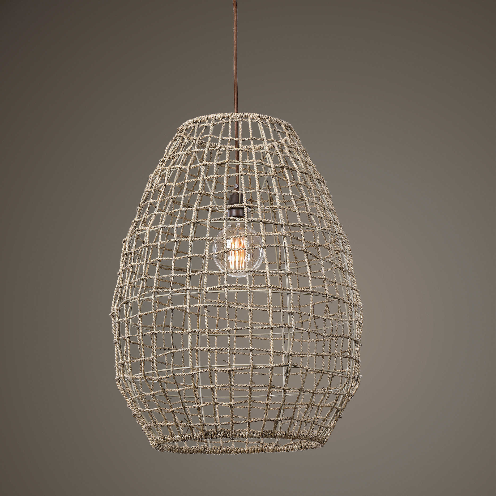 Люстра Cross Weave, выполненная из натуральной морской травы в перекрестном плетении, создает изысканный и воздушный светильник, дополненный матовыми элементами цвета состаренной бронзы. Подвеска рассчитана на одну лампочку мощностью до 60 Вт с цоколем Эдисона (лампочка не включена в комплект). В комплекте идет 4,57-метровый шнур для гибкой и регулируемой установки.