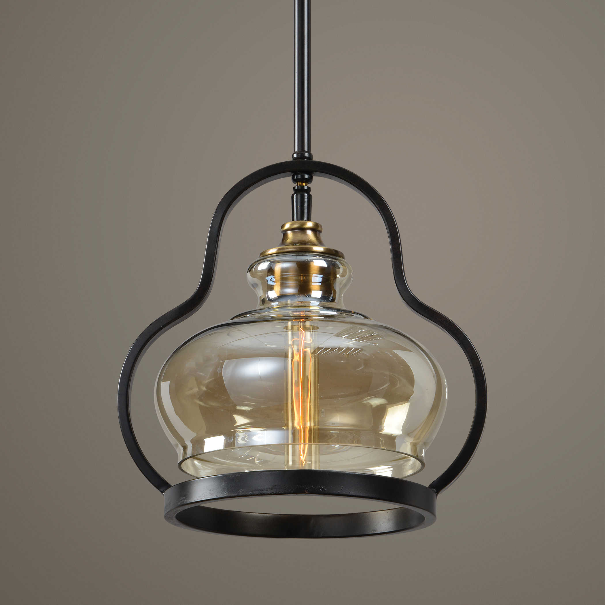 Представляем вам обновленную люстру Cotulla - мини, которая восхищает своим изысканным дизайном. Она оснащена извилистой акцентной металлической трубкой, которая повторяет контур светло-янтарного стеклянного абажура. Подвесной светильник выполнен с использованием состаренного черного железа и декорирован антикварными латунными деталями. Люстра Cotulla подходит для использования ламп мощностью от 1 до 100 Вт и оснащена цоколем Эдисона.