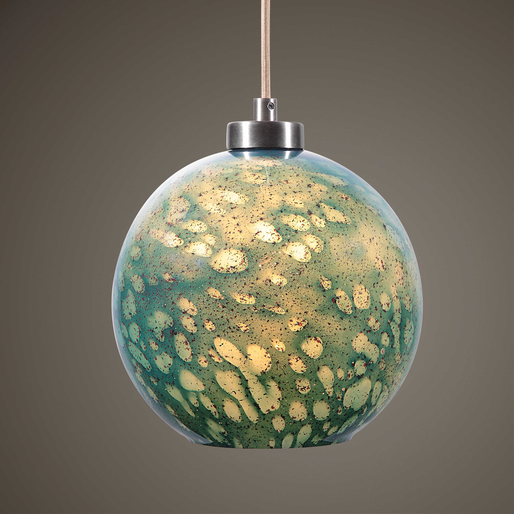 Люстра Gemblue — это истинное произведение искусства, собравшее в себе утонченность и изысканный дизайн. Её центральным элементом является отделка из матового никелевого металла бежевого цвета, великолепно сочетающаяся с голубым стеклом, напоминающим цвет морской волны. Однако это стекло уникально тем, что в выключенном состоянии оно имеет теплый голубой оттенок, а при включении создает каменный узор в цветах морской волны и кремового.