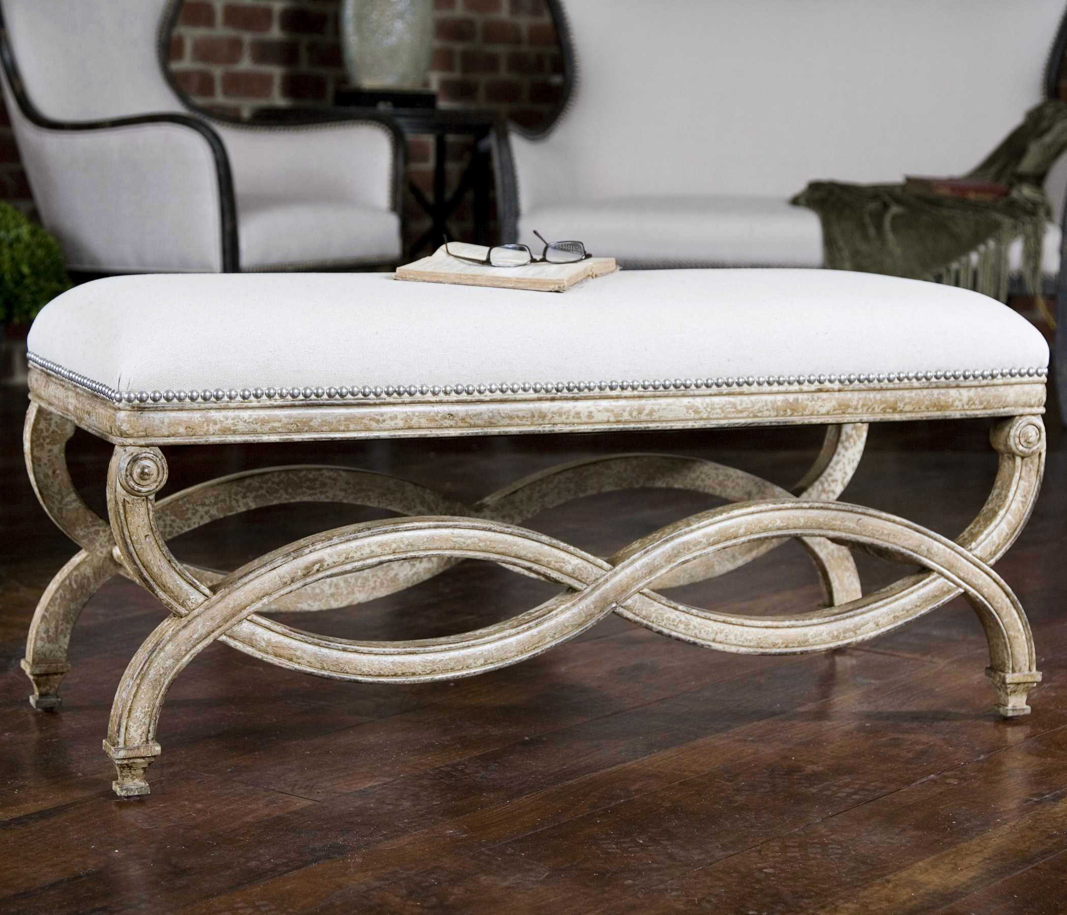 Представляем вам банкетку Karline – это настоящее произведение искусства. Ее рама выполнена вручную из массива красного дерева и имеет миндалевидную антикварную отделку, создавая впечатление произведения старины. Сиденье обито натуральным льном и хлопком, защищенными тефлоновым покрытием, и украшено стильными серебряными гвоздями цвета шампанского. Karline – это не просто мебель, это искусство и роскошь, которая добавит шарма и утонченности вашему интерьеру.