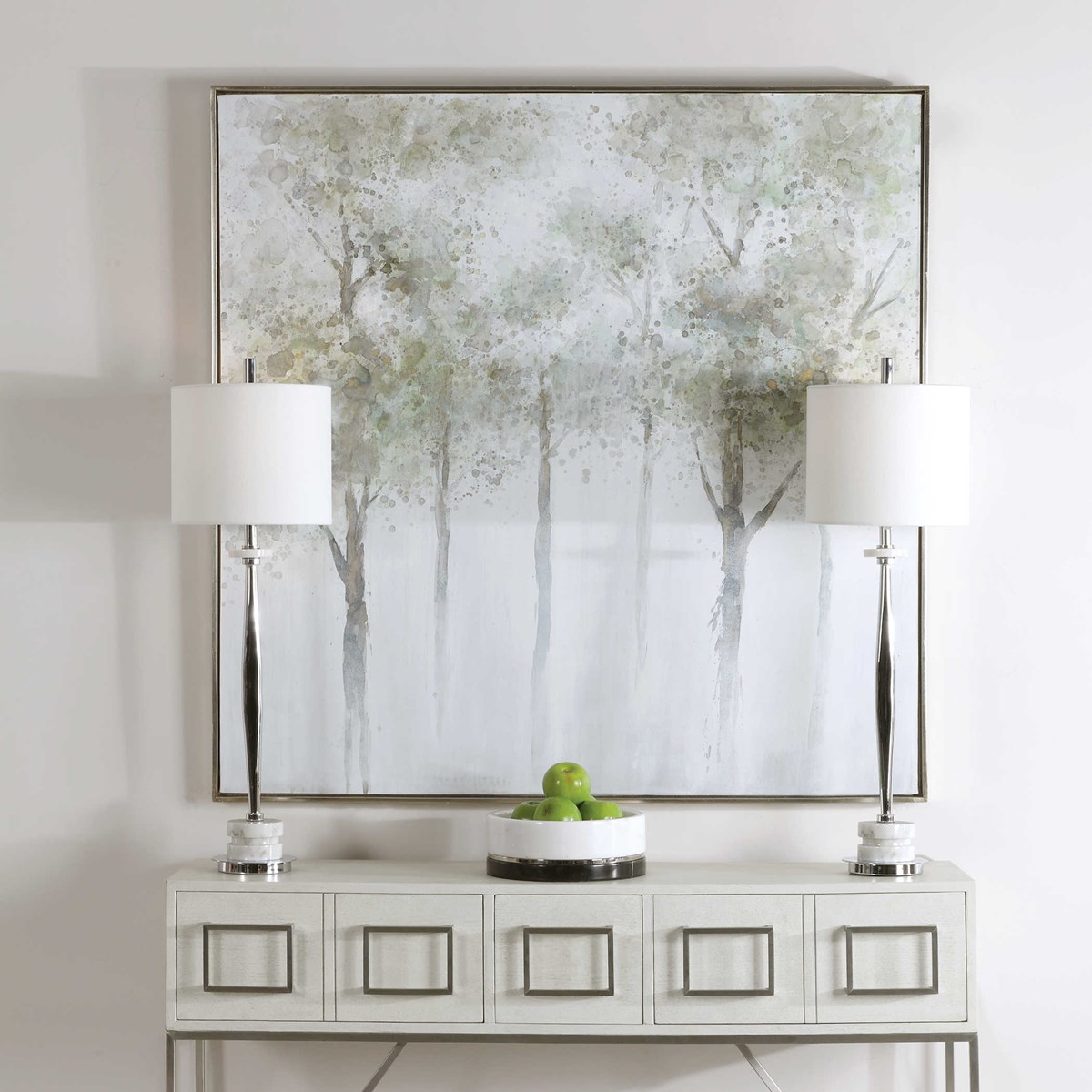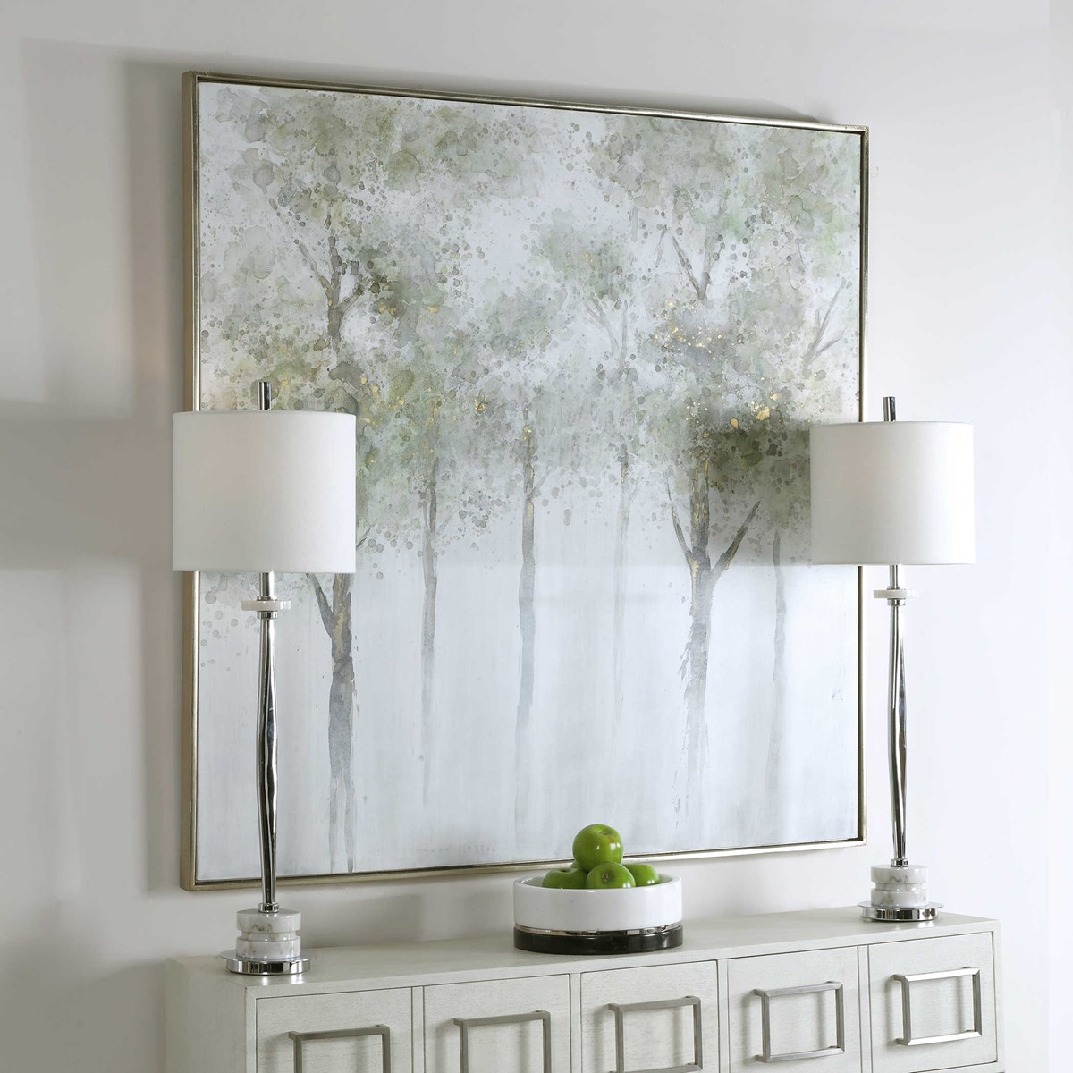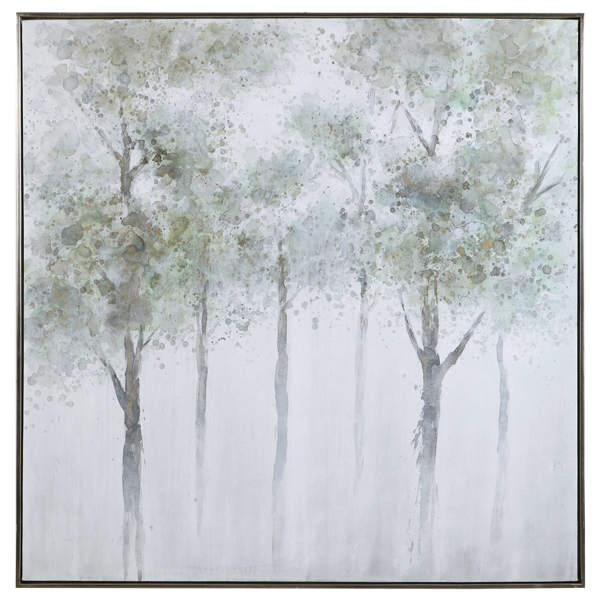 Calm Forest - это акварельное воплощение природы, созданное вручную на холсте. Мягкие шалфейно-зеленые, желтые и серые оттенки олицетворяют природную гармонию, а элегантная серебряная галерейная рама дополняет образ. Благодаря ручной работе каждое произведение уникально и неповторимо, и обладает своим характером.