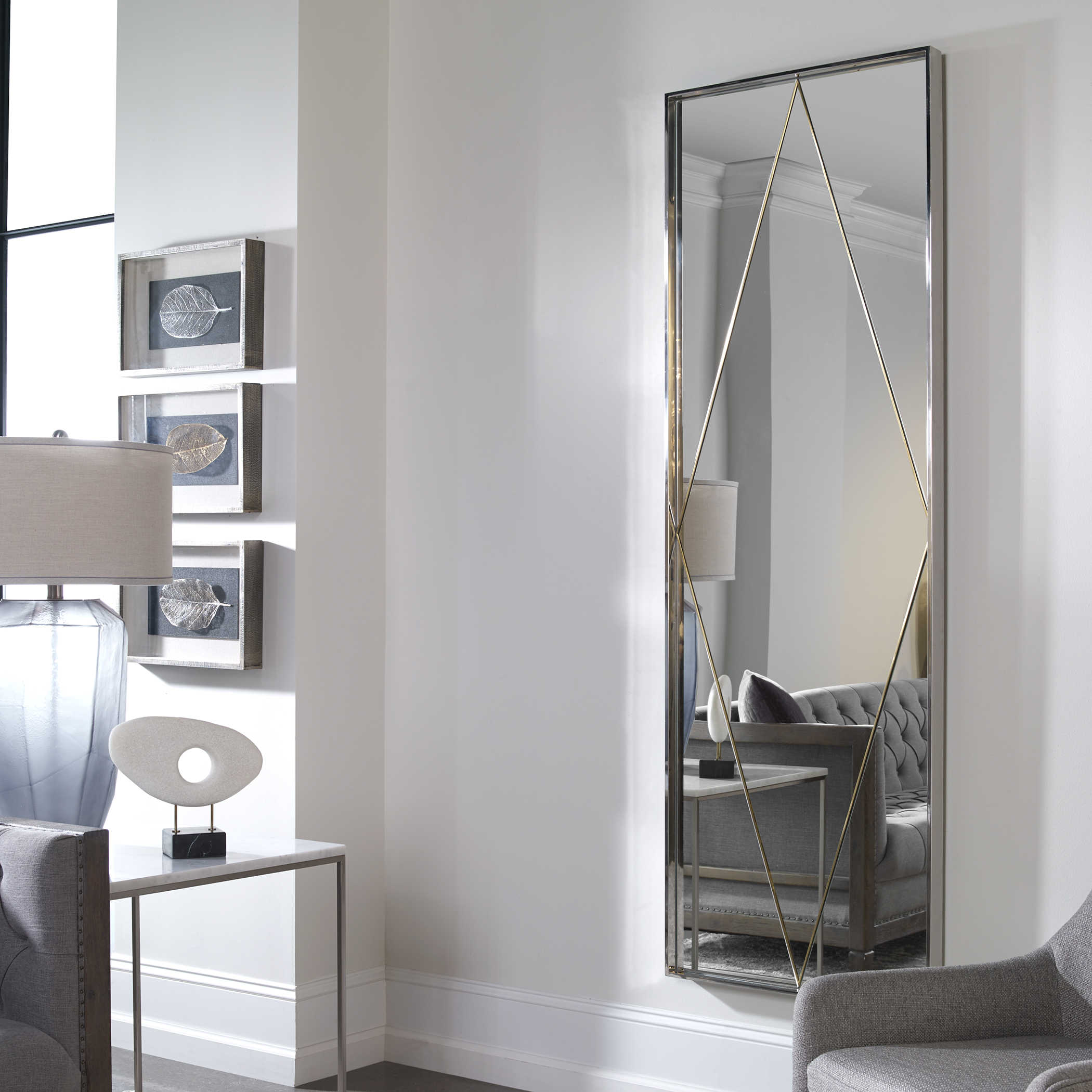 Зеркало Solitaire от американского бренда Uttermost - это изысканное зеркало, которое не подчиняется времени. Изготовленное из прочной стали с покрытием из полированного никеля, оно представляет собой прочную и элегантную раму. Зеркало украшено миниатюрной ромбовидной вставкой из нержавеющей стали, отделанной матовой латунью, что добавляет изыска и характера этому изделию. Вы можете подвесить его как горизонтально, так и вертикально, чтобы адаптировать его к вашему интерьеру и вашим предпочтениям. Solitaire - это зеркало, которое добавит роскоши и стиля в ваше пространство, подчеркивая ваш уникальный вкус в дизайне интерьера.