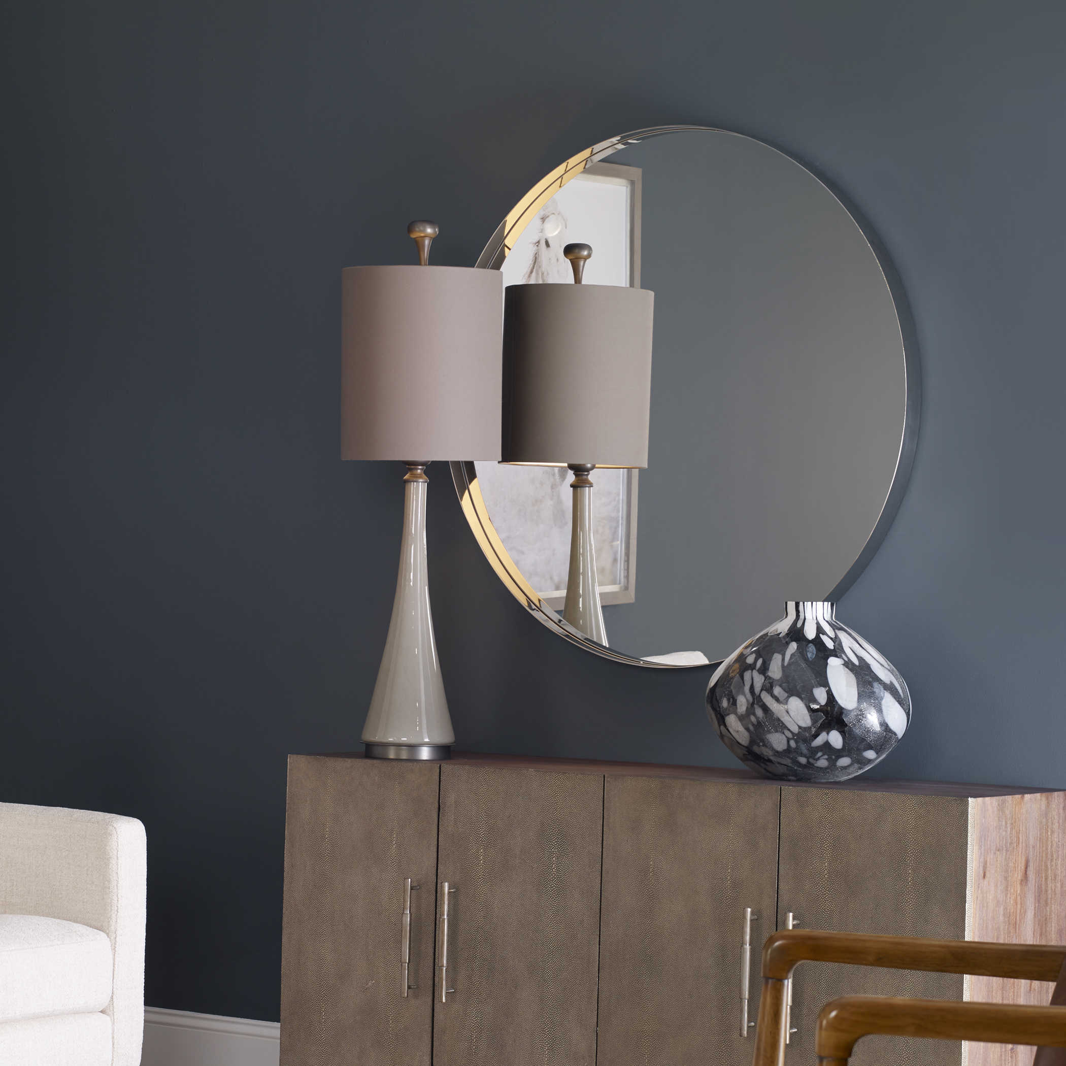 Padria Nickel Round Mirror от американского бренда Uttermost - это классическое круглое зеркало, которое впечатляет своей прочной рамой из нержавеющей стали, украшенной изящным покрытием из полированного никеля. Это изделие сочетает в себе изысканный стиль и надежность материалов, создавая уникальное сочетание функциональности и элегантности.