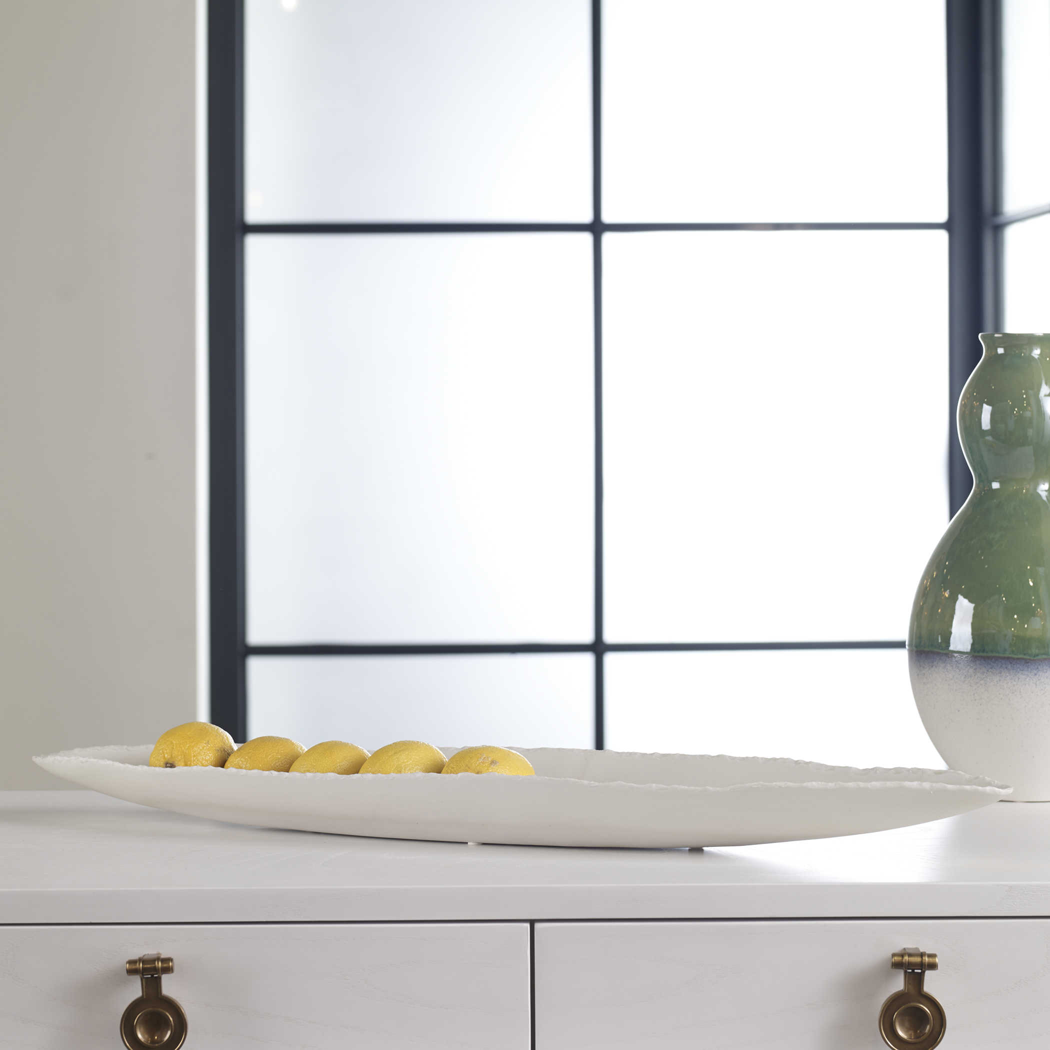 Чаша Pontoon - это произведение искусства, выполненное в деревенском стиле и придавшее форму лодки. Изготовленная из фарфора, она обладает удивительной реактивной белой глазурью, украшенной бледной селадоновой глазурью. Эта уникальная комбинация цветов придает чаше непередаваемую красоту и изысканность.