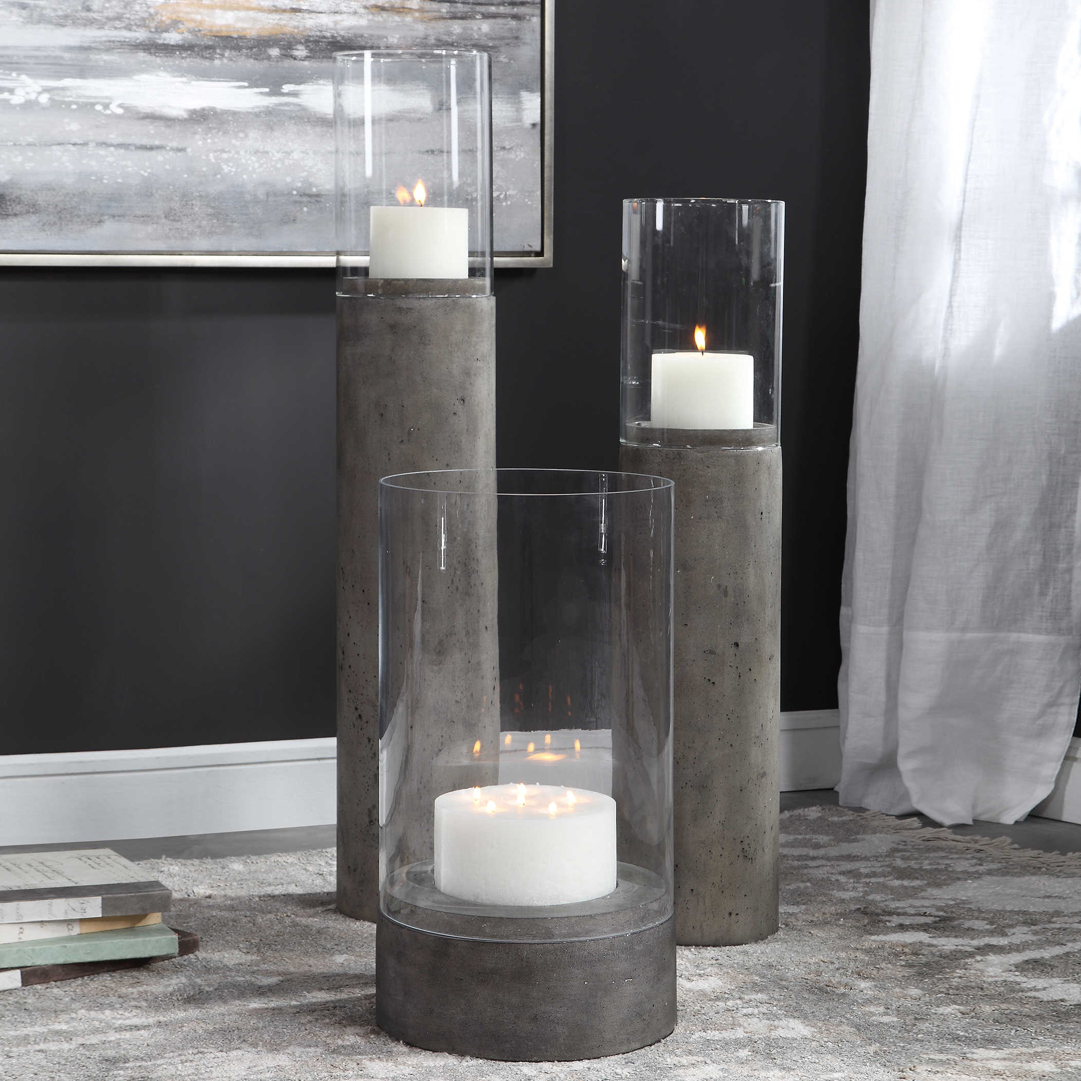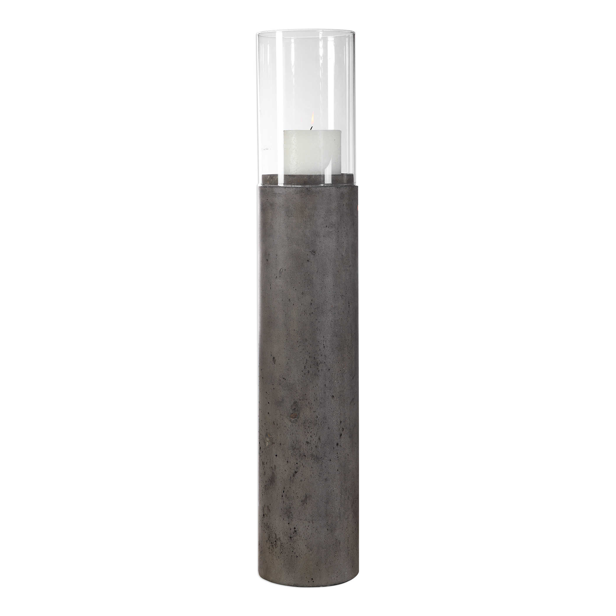 Подсвечник Rakan – это величественное произведение искусства и функциональности. Его внушительный размер и изысканное исполнение придают интерьеру неповторимую атмосферу. Состаренное бетонное основание придает подсвечнику характер и тяжесть, в то время как прозрачный стеклянный шар создает игру света и тени, добавляя загадочности и роскоши.