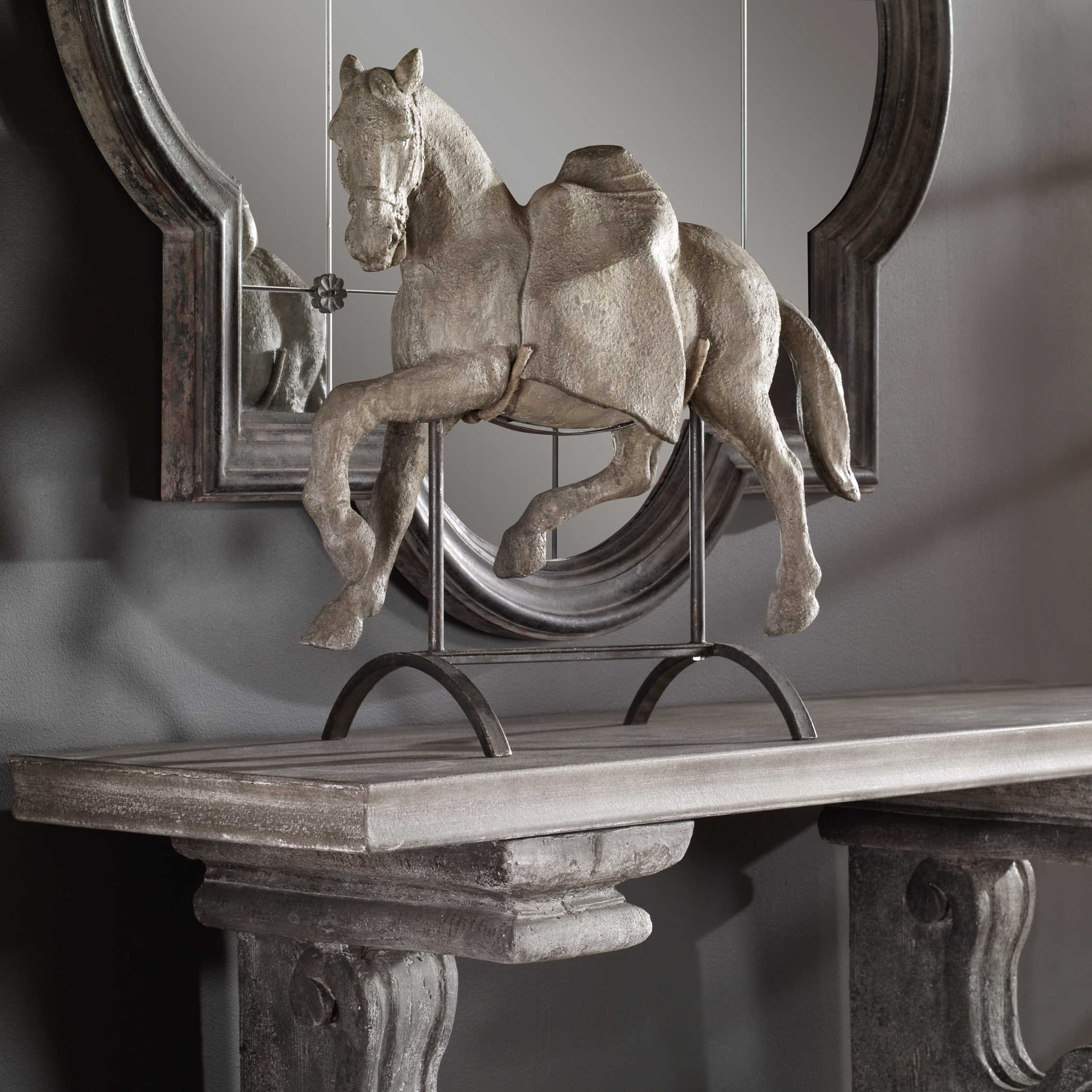 Скульптура Lazzaro Horse - это великолепная старинная репродукция лошади, вдохновленная оригинальной резьбой. Она излучает очарование и элегантность, с изящной серой отделкой, которая придает ей вид состаренного камня. Лошадь стоит на прочной стальной основе, которая дополнительно усилена облегающими опорами, обмотанными вручную тонкой веревкой. Эта скульптура не только воспроизводит детали и форму оригинального искусства, но и приносит дух античной роскоши и грации в ваш интерьер. Lazzaro Horse - это истинное произведение искусства, которое украсит ваш дом и добавит в него шарм и историческое великолепие.