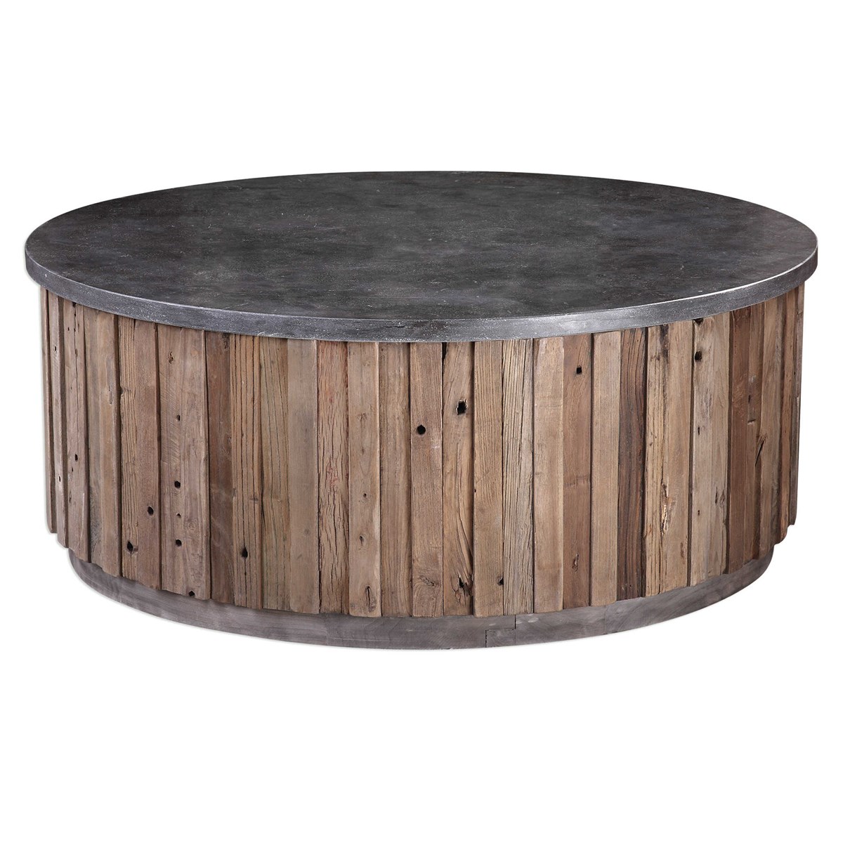 Журнальный стол Finnegan сочетает в себе уникальную красоту и природные материалы. Столешница выполнена из цельного вощеного голубого камня с естественными крупинками белого мрамора и прожилками, создающими изысканный вид. Планки из переработанной древесины вяза чередуются, добавляя текстуру и характер. Массив дерева продолжает изменяться при колебаниях температуры и влажности, что может привести к появлению небольших трещин и неровных поверхностей, придающих столу аутентичность и индивидуальность.