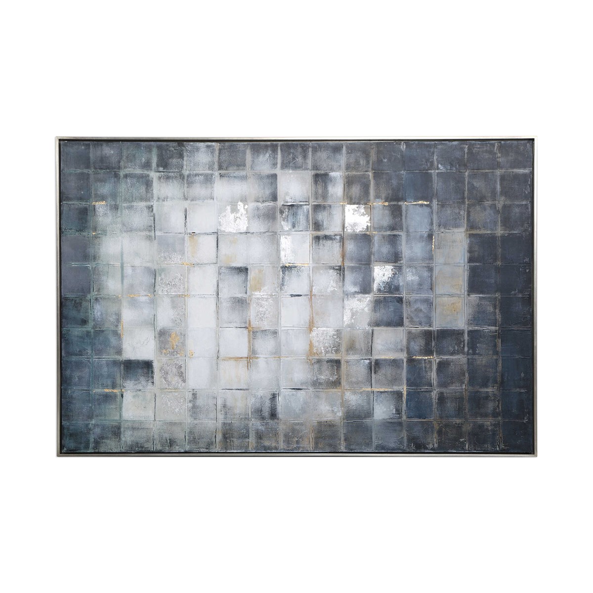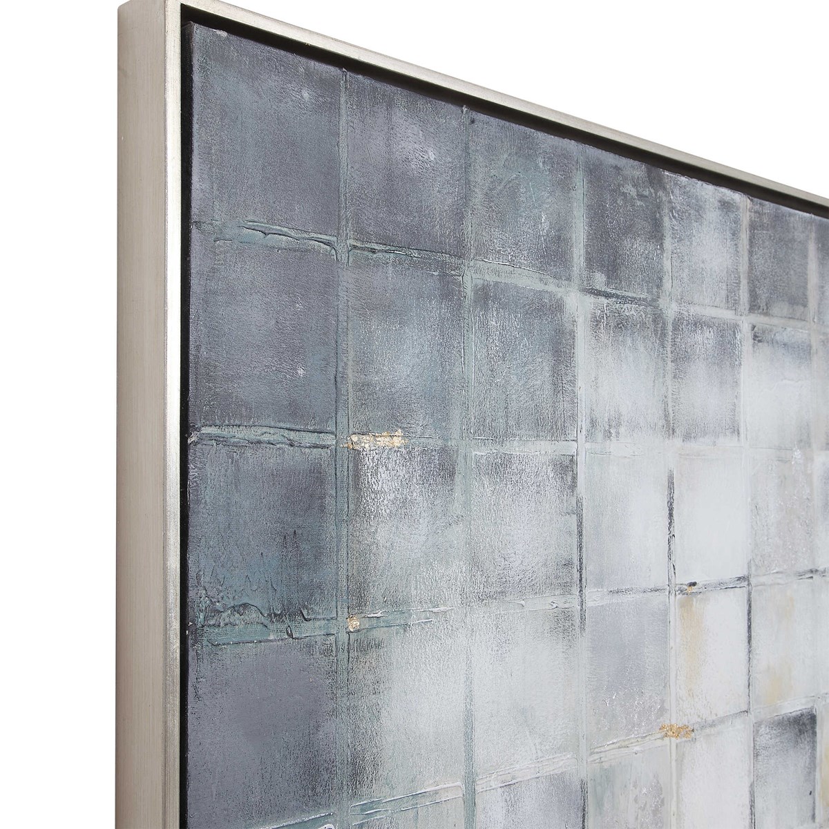 Спектр холодных голубых, серых и серебристых оттенков, легко текстурированных и дополненных тонкими вставками из сусального золота, придают этой картине особый визуальный интерес. Оформлена в галерейную раму из серебряного листа. Ручная работа делает каждый экземпляр уникальным, придавая индивидуальный характер. Графика Graphs может быть повешена как горизонтально, так и вертикально, подчеркивая ее универсальность в сочетании с вашим пространством.