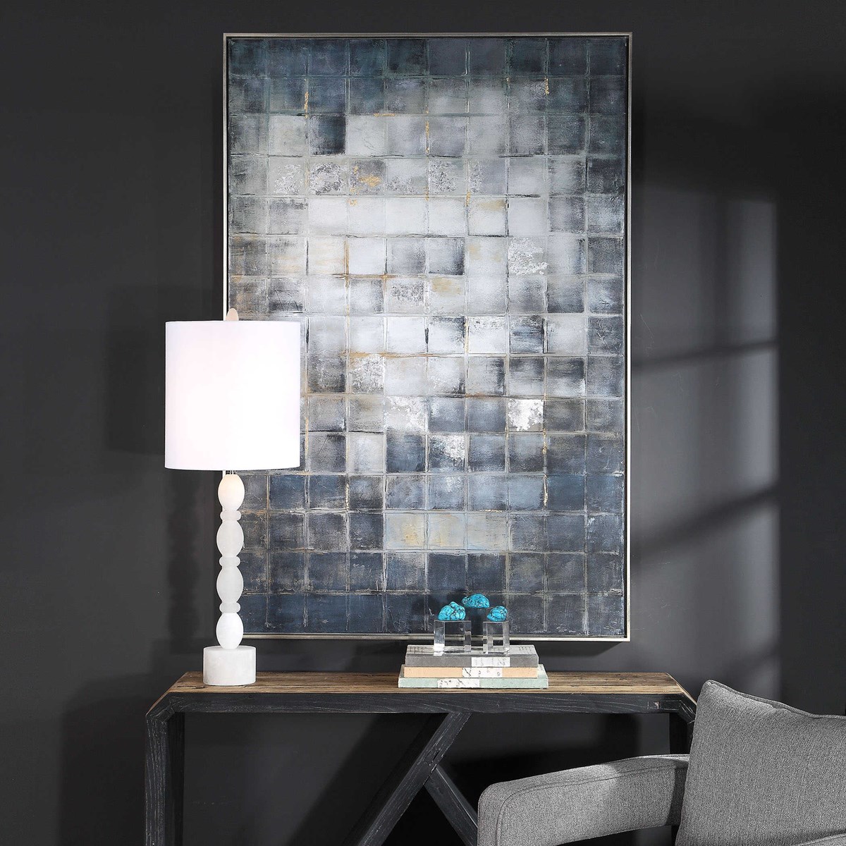 Graphs – это современное произведение, представленное американским брендом Uttermost. Геометрический узор в городском стиле, ручная работа на холсте, придает дизайну изысканность. Данная модель воплощает в себе линии и формы, созданные легкими, но осязаемыми мазками, которые переносят нас в мир урбанистической эстетики.