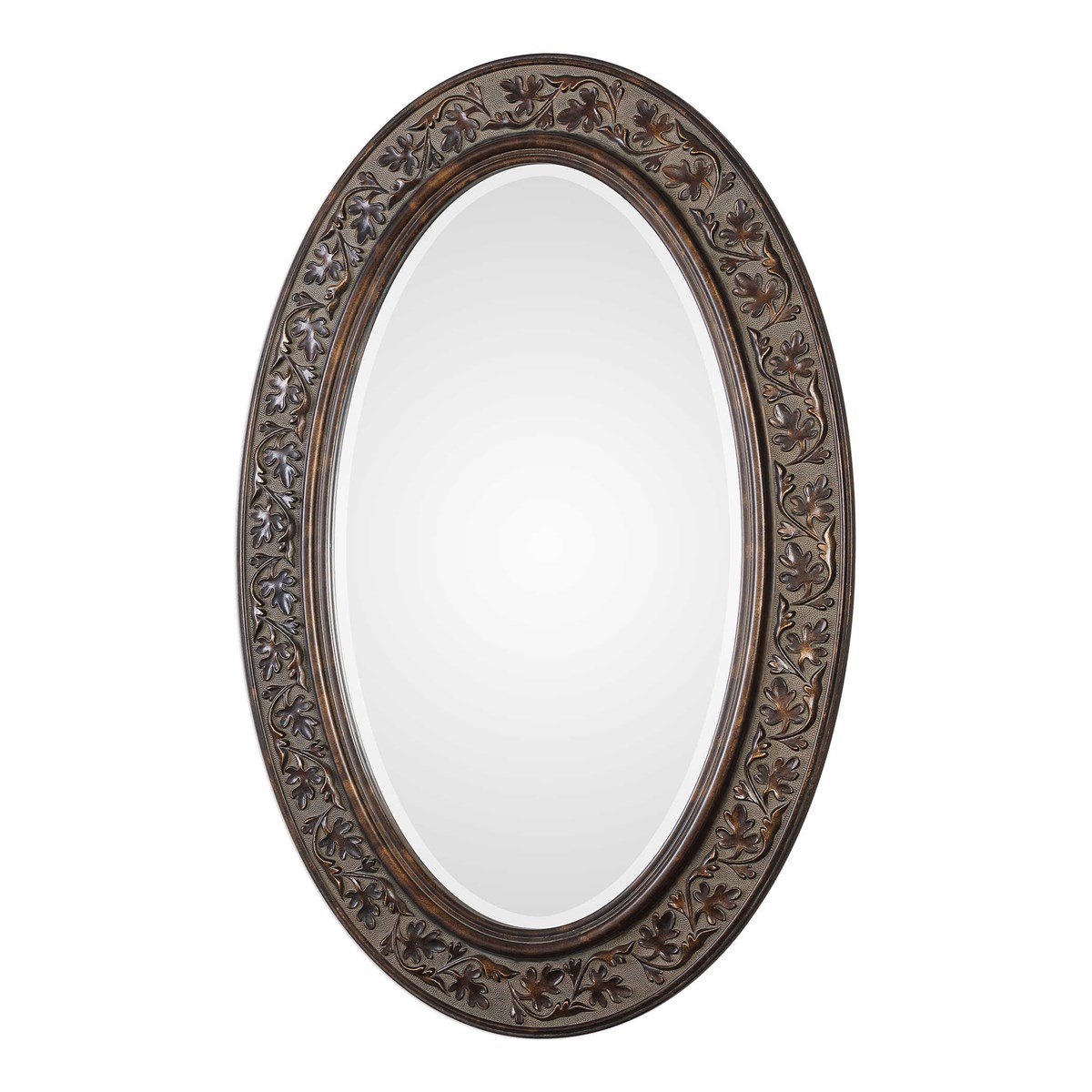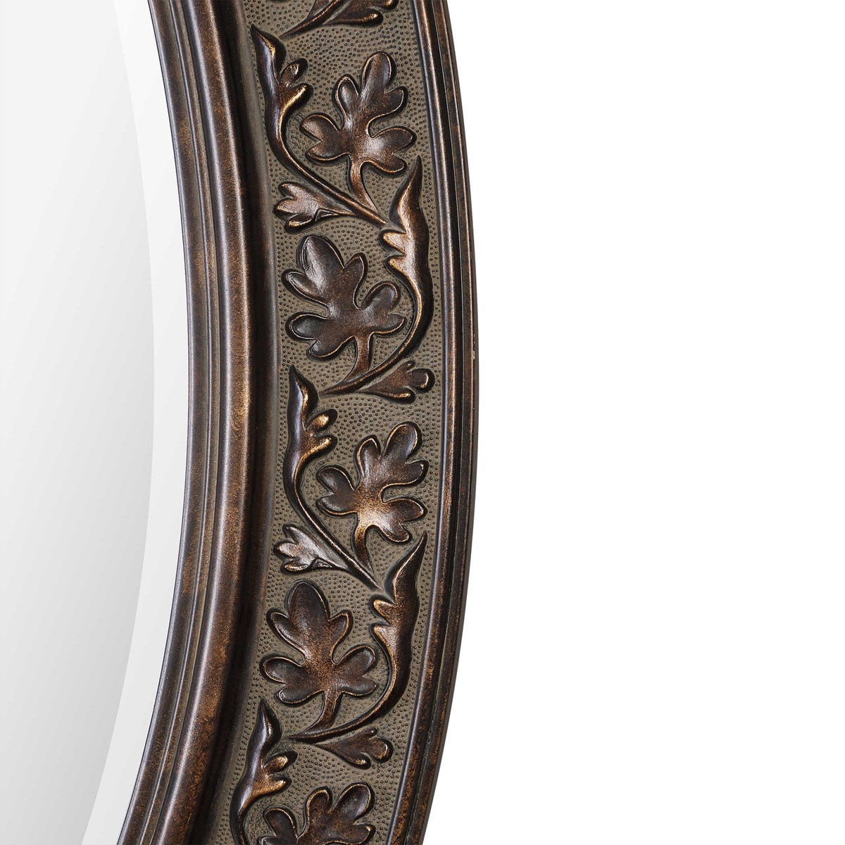 Эта овальная оправа, украшенная тиснением в виде плавных листьев, придает зеркалу изысканный характер. Мастерски выполненная из состаренной бронзы с оттенком античного золота, рама подчеркивает изысканность дизайна. Зеркало с фаской 2 см предоставляет возможность подвешивания как вертикально, так и горизонтально, придавая гибкость в его использовании.