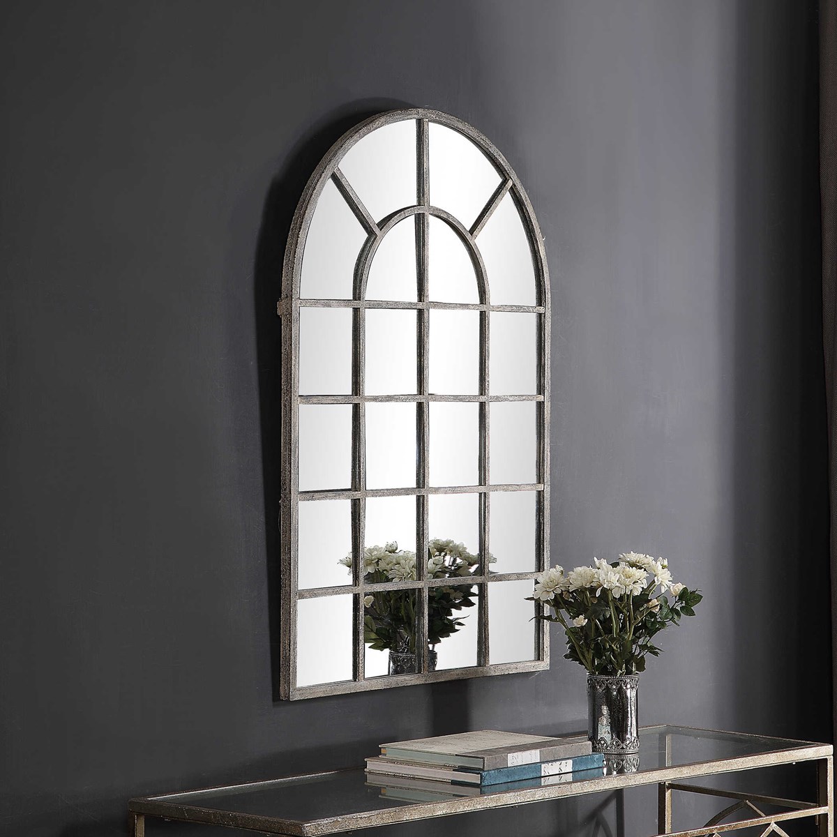 Это уникальное зеркало от американского бренда Uttermost представляет собой металлическую арочную оконную раму, прекрасно выполненную в старинном деревенском сером цвете. Элегантная форма арки придает зеркалу характер и изыск, а цветовая гамма добавляет пространству теплоты и стиля. Это зеркало не только функциональный элемент, но и визуально привлекательный акцент, который может трансформировать любое помещение, придавая ему особый характер и атмосферу.