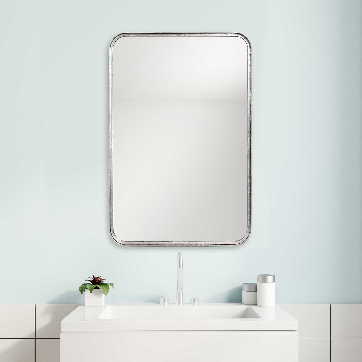 Эта стильная оправа зеркала от американского бренда Uttermost с изогнутыми углами и внутренним выступом выполнена из толстого металлического ремешка, который подчеркивает современный дизайн. Отделка полированным серебряным листом добавляет изысканности и элегантности. Можно повесить как вертикально, так и горизонтально, предоставляя вам свободу выбора в оформлении интерьера.