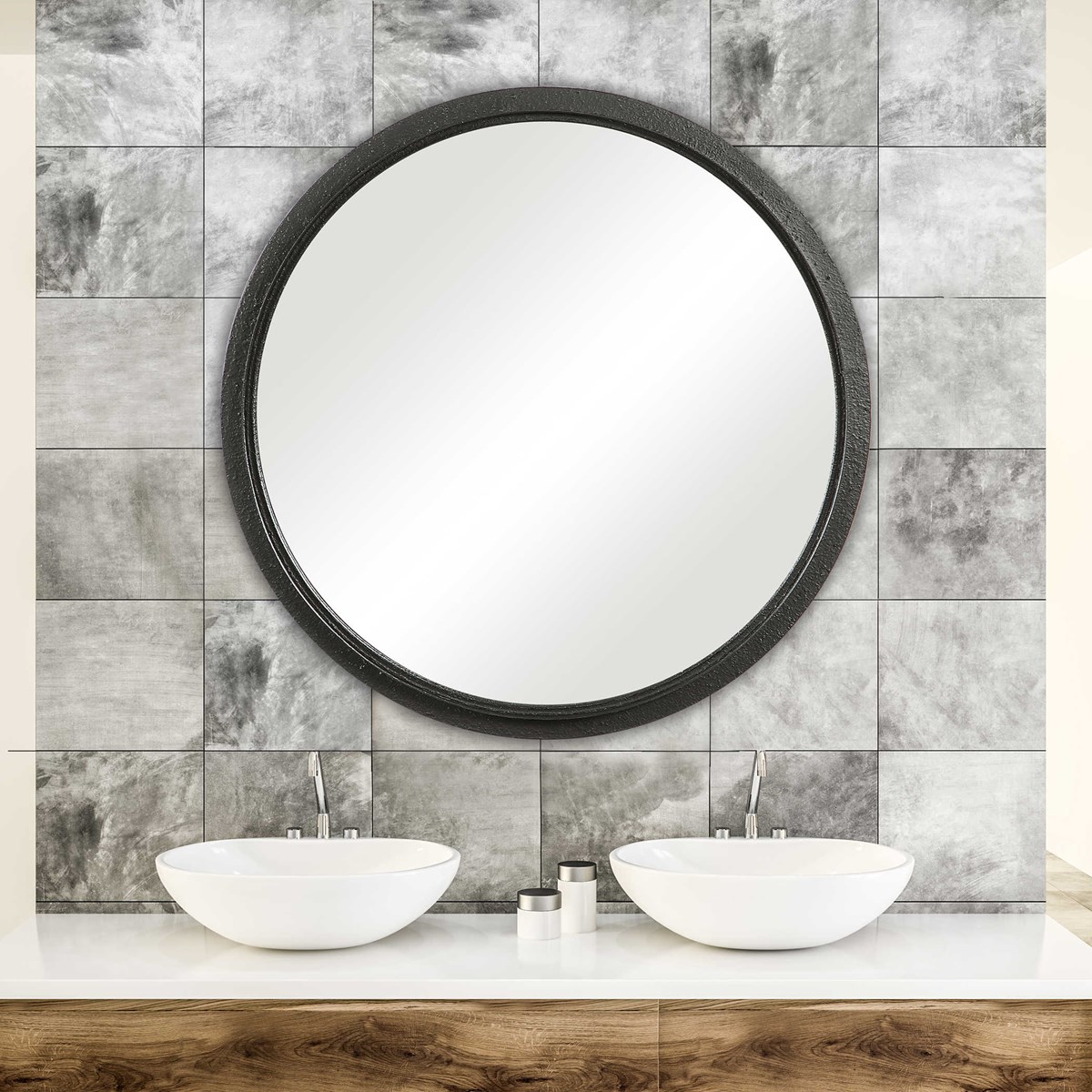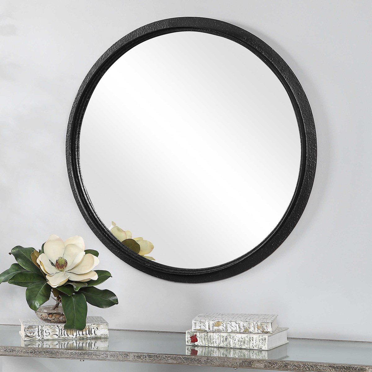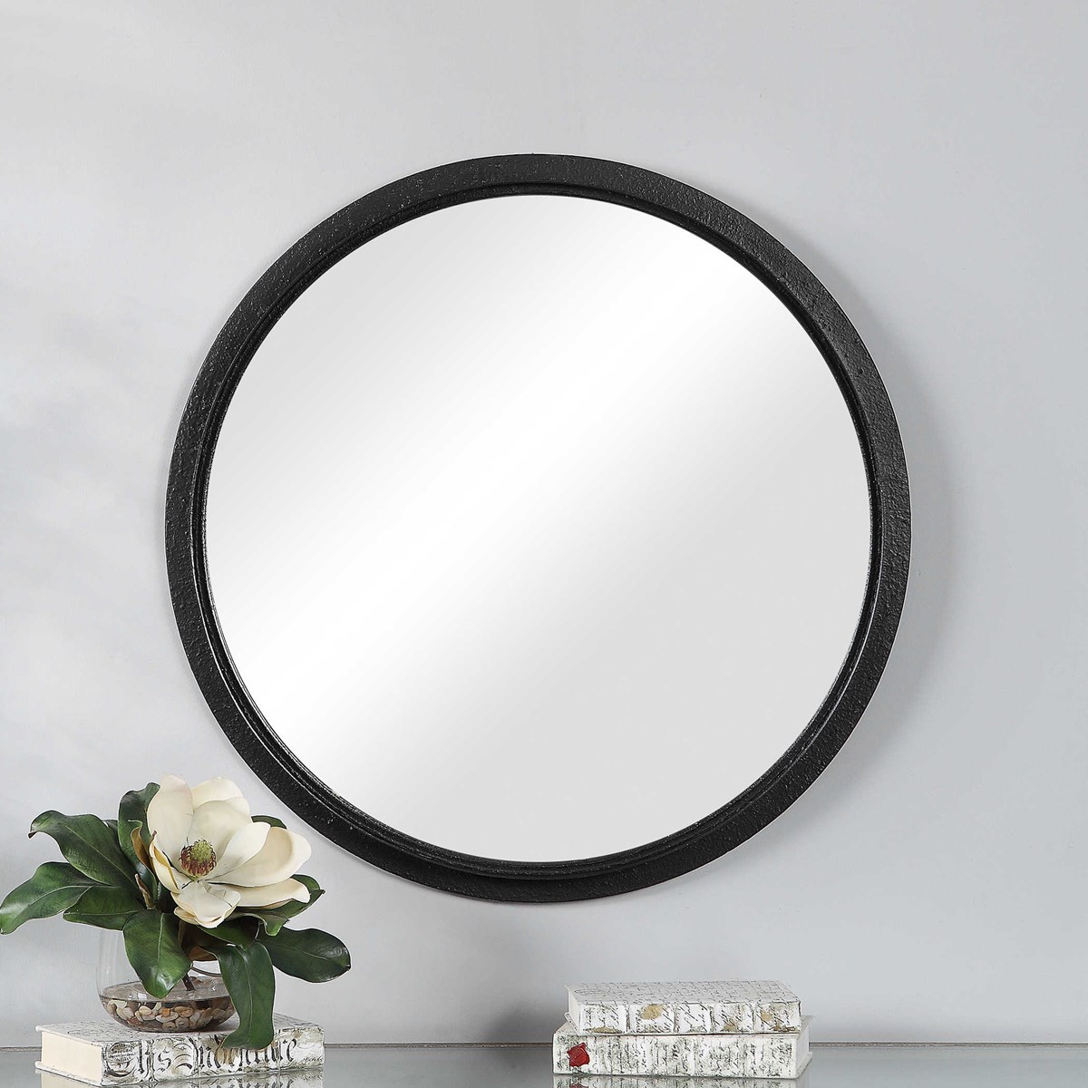 Элегантная трехмерная профильная рама зеркала от бренда Uttermost выделяется глубоким внутренним краем, создавая интересный контраст на плоской металлической основе. Рельефная поверхность рамы отделана черным сатином, придавая ей стильный и изысканный внешний вид.