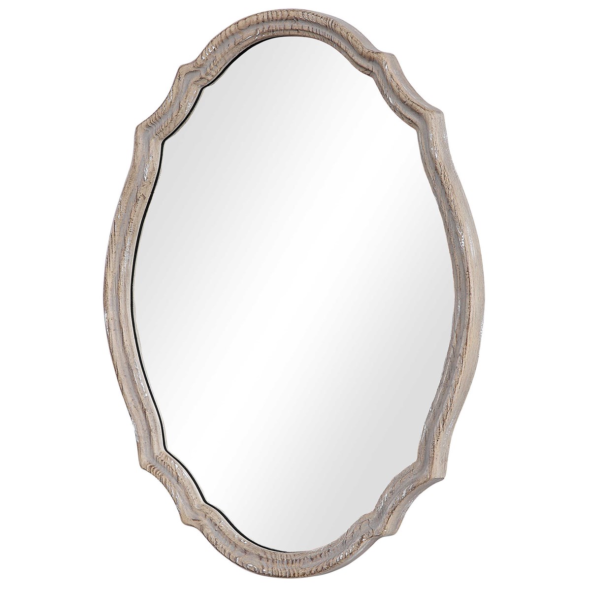 Элегантность воплотилась в этом зеркале от Uttermost, американского бренда, знаменитого своим высоким стилем. Изысканные изгибы рамы, подражающей натуральному дереву, подчеркнуты светлым оттенком слоновой кости, придавая изделию неповторимую изысканность. Возможность подвешивания как вертикально, так и горизонтально делает это зеркало не только элегантным акцентом, но и универсальным решением для вашего интерьера.