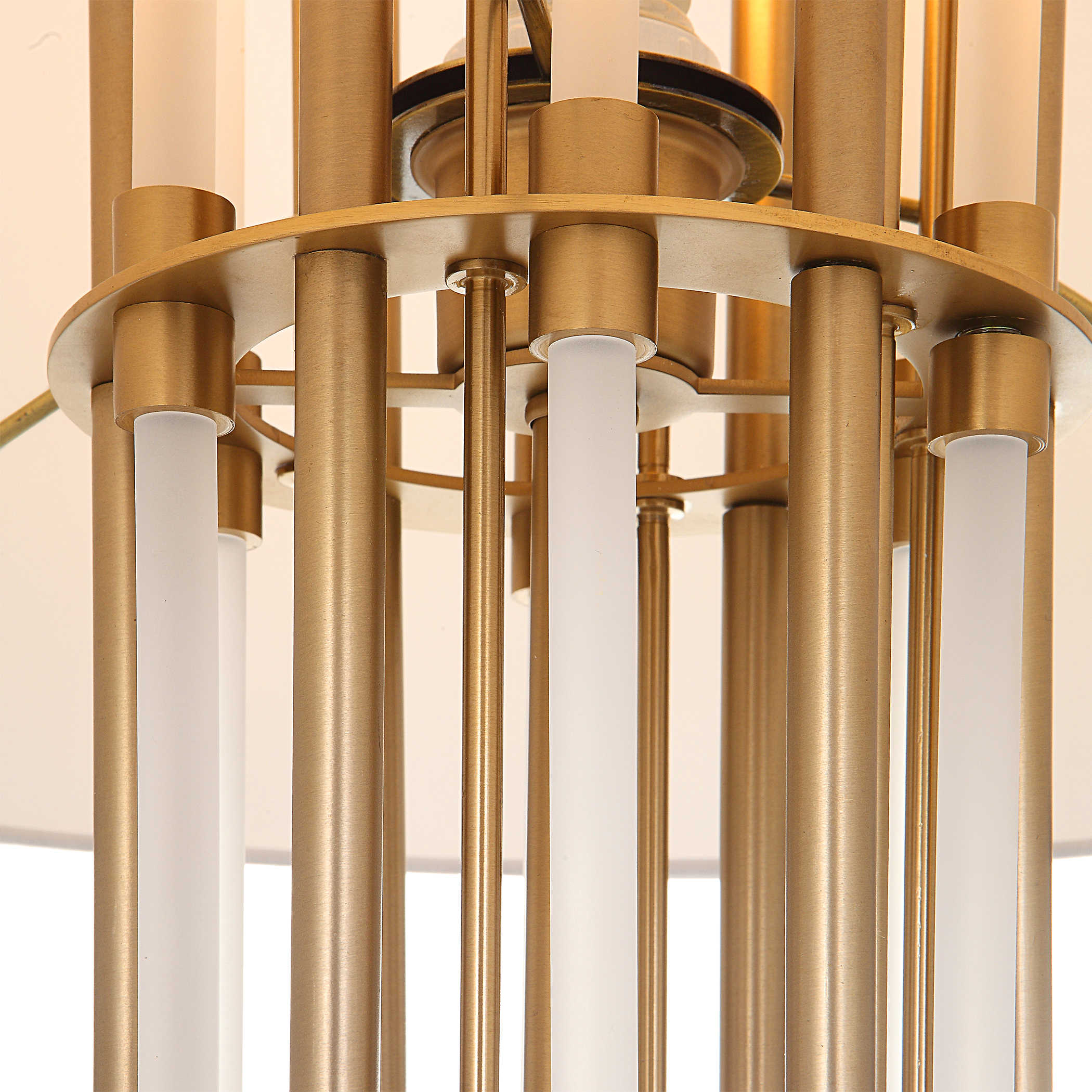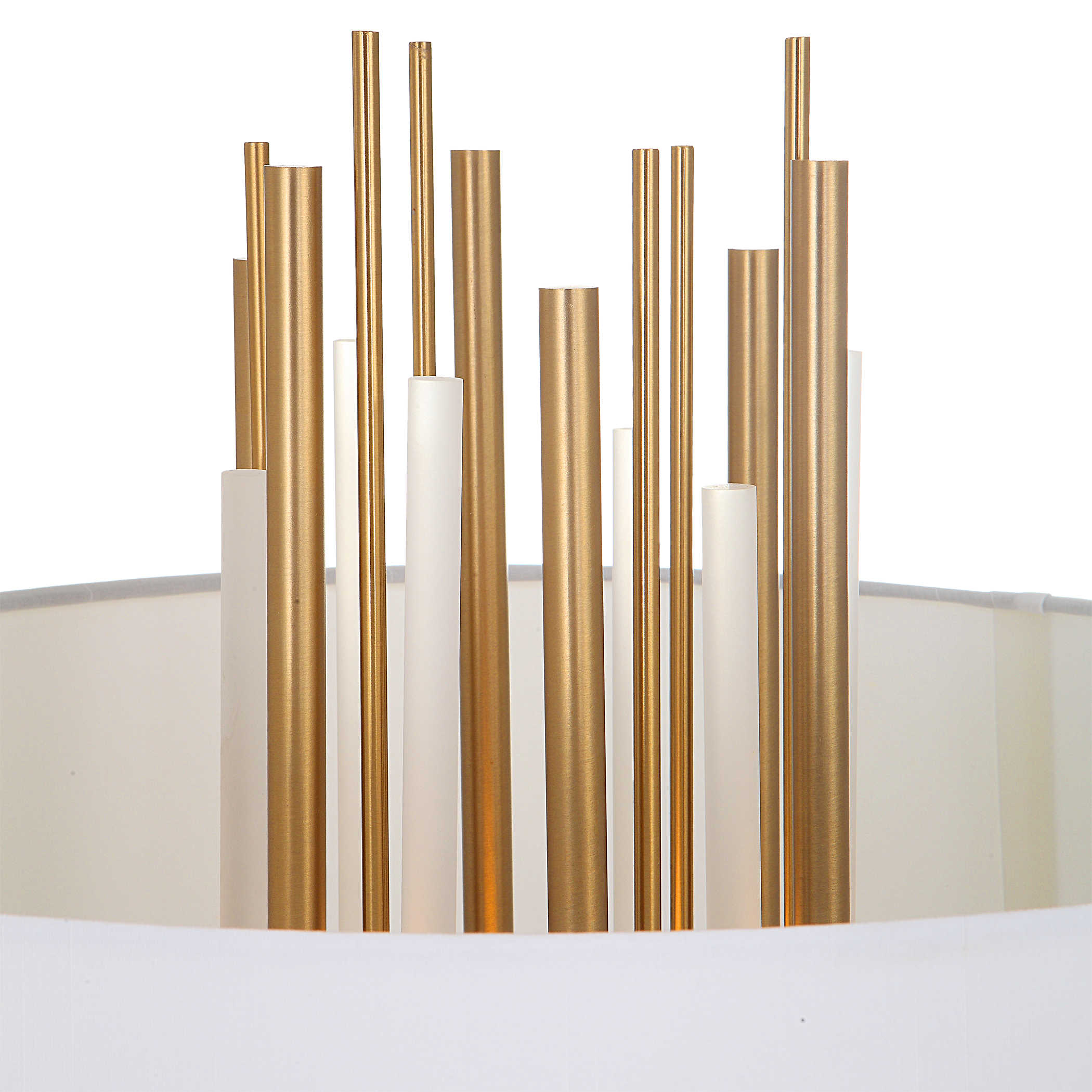 Конусообразный круглый абажур из искусственного шелка с твердой обложкой дополняет общий дизайн лампы. Он мягко рассеивает свет, создавая приятную атмосферу и предоставляя комфортное освещение. Комбинация материалов и форм в Cityscape придает лампе современный шарм и стиль.