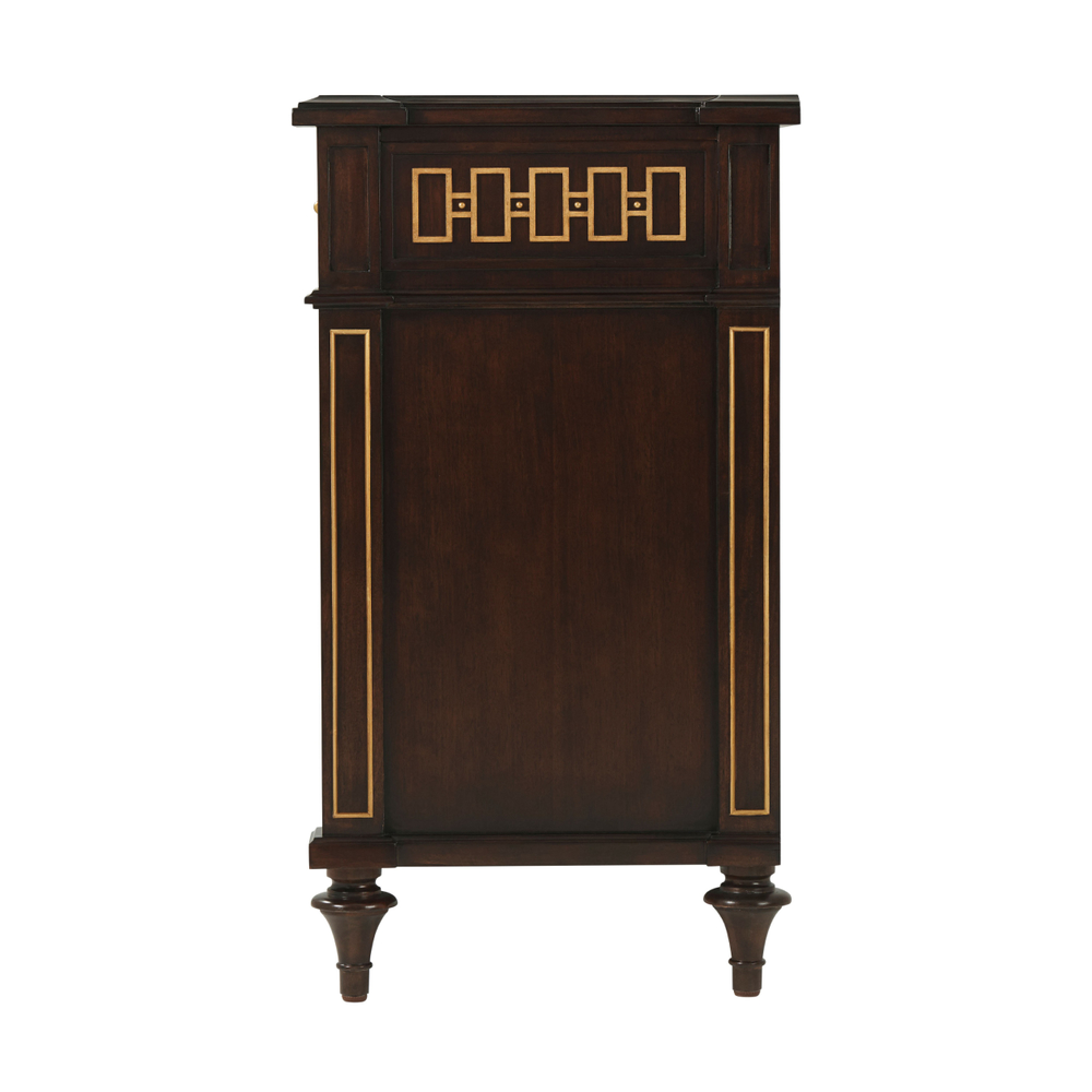 Показан в отделке Cambridge с изысканными золотыми деталями. В комплект входит защита от опрокидывания. Также доступны другие варианты отделки, позволяющие адаптировать комод к любому интерьеру