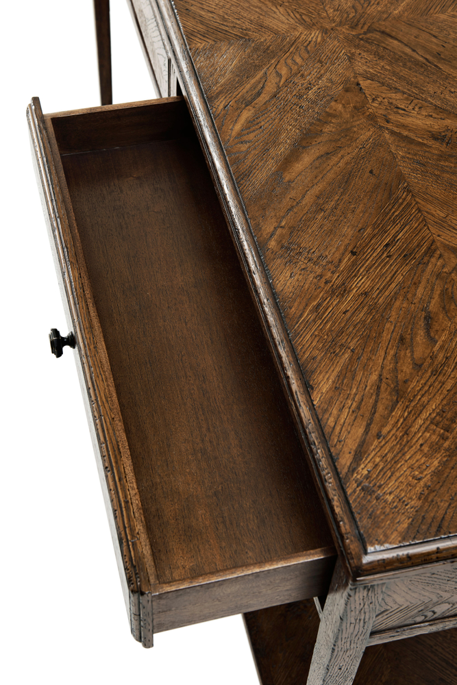 Консольный стол NOVA воплощает элегантность и функциональность в каждой детали. Его конические ножки и стильные ручки с отделкой Verde Bronze придают ему особую изящность. Столешница из дубового паркета добавляет естественную текстуру и теплоту, а два фризовых ящика с отделкой Dusk предлагают удобное хранение. Этот зеркальный консольный стол прекрасно впишется в любой интерьер, добавляя шарм и функциональность в пространство.