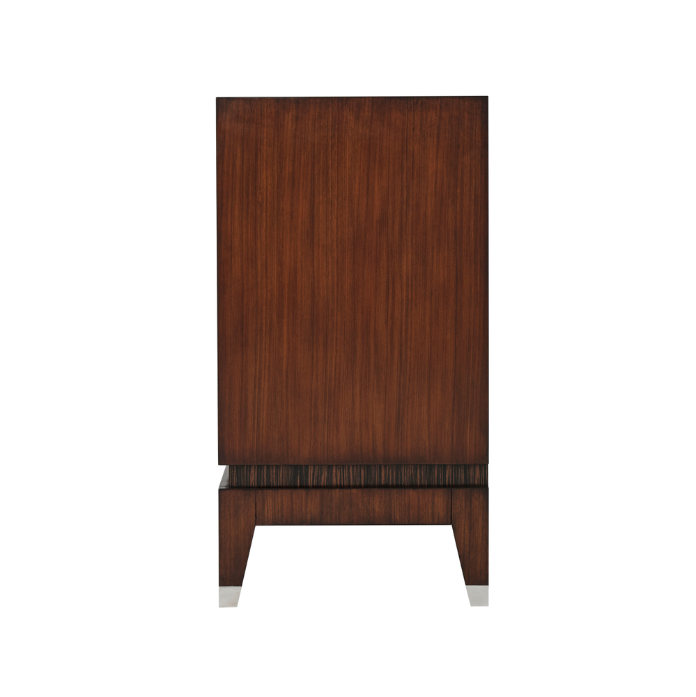 Буфет Shunan, отделанный элегантным шпоном Hyedua, впечатляет своей роскошной прямоугольной столешницей, расположенной над четырьмя дверцами Argento с рельефным бамбуковым декором. Внутри шкафов отделка из дерева Sycamore, боковые секции оснащены двумя регулируемыми полками, а центральная часть включает четыре выдвижных ящика и полку. Буфет установлен на основание из эбонированного шпона с угловыми раздвижными ножками, украшенными колпачками из нержавеющей стали, что добавляет ему завершенный и изысканный вид.
