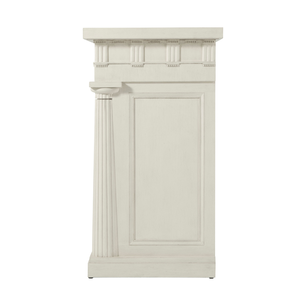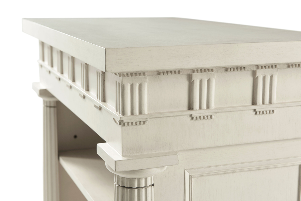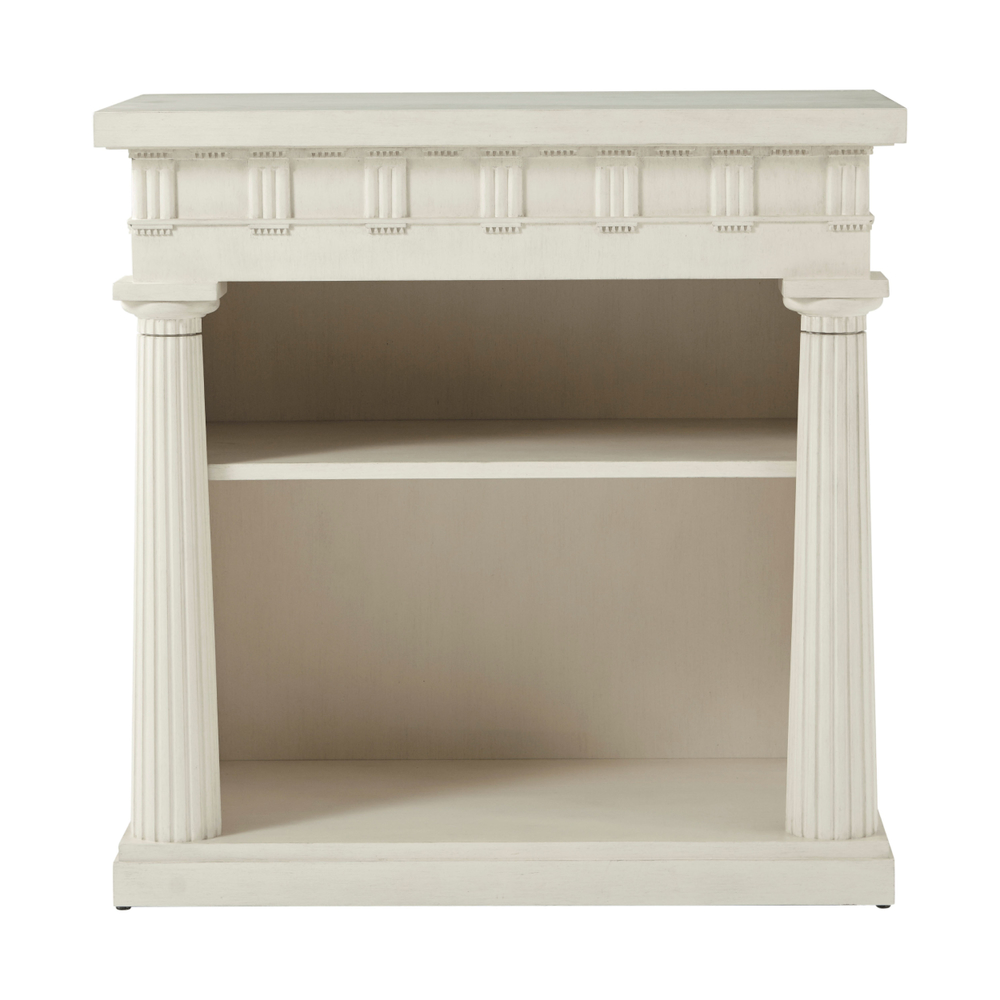 Боковой столик с полками для книг Mark, созданный по задумке дизайнера Alexa Hampton, воплощает классическую элегантность. Его дизайн включает рифленые дорические колонны, фриз с триглифами и метопами, а также гуттаперчевые и утопленные боковые панели. Этот элемент мебели не только практичен, но и привлекает внимание своими архитектурными деталями, добавляя изысканности любому интерьеру.