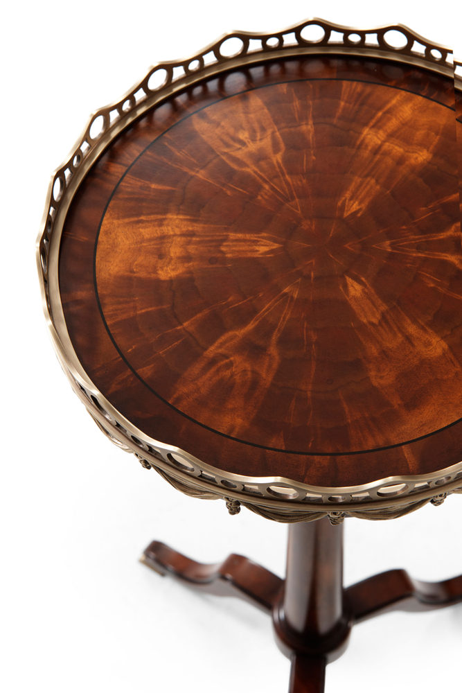 Боковой столик Telescopic – это круглый регулируемый телескопический стол из красного дерева, который отличается изысканным дизайном и продуманной функциональностью. Латунная литая галерея, латунный механизм и поворотная колонна придают столу винтажное очарование, а ножки с откидным верхом добавляют практичности, делая его идеальным дополнением для интерьера.
