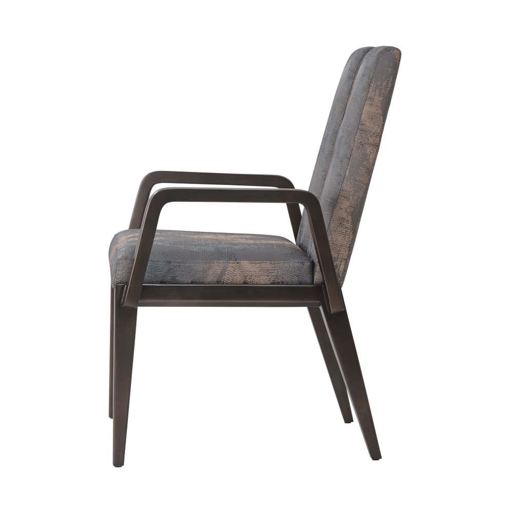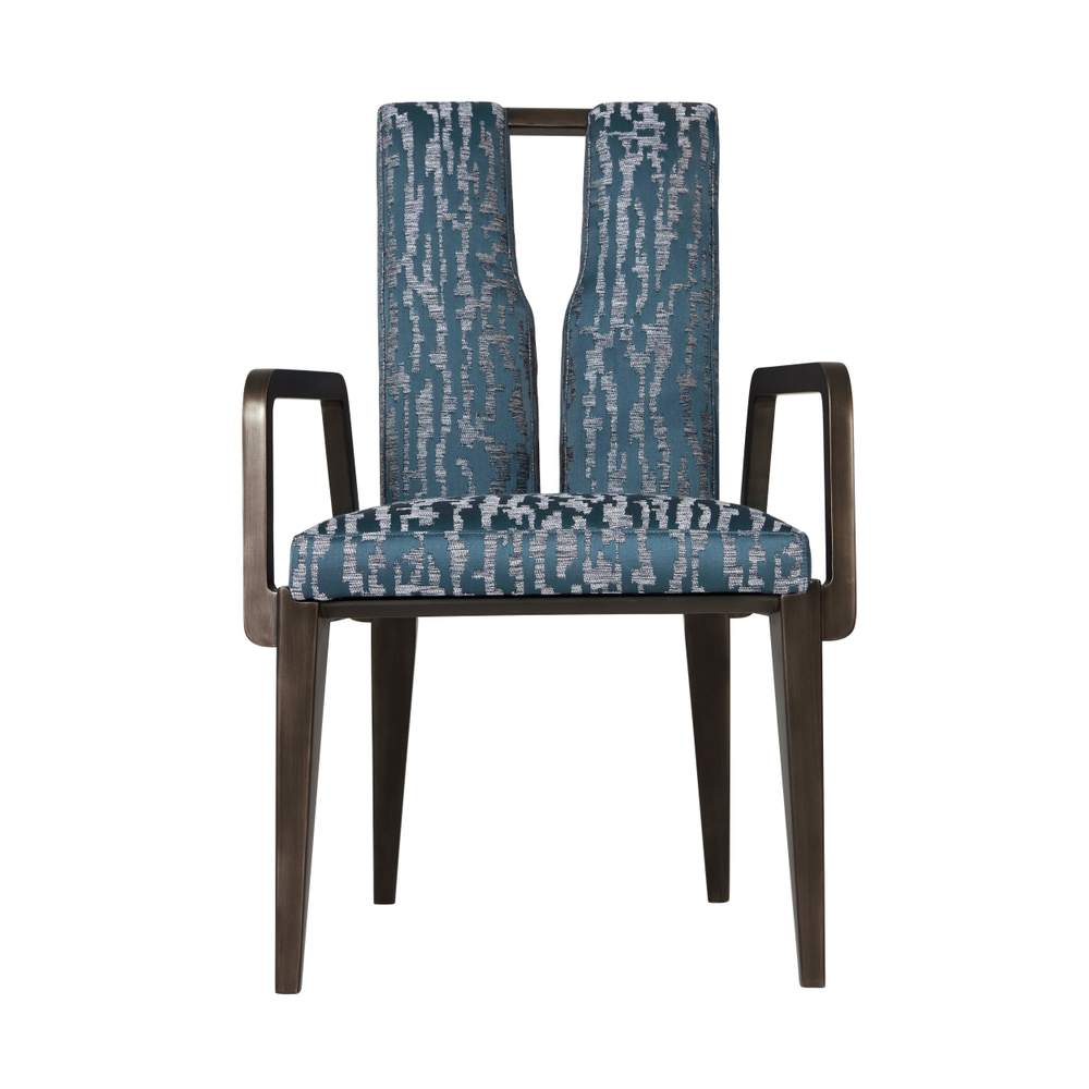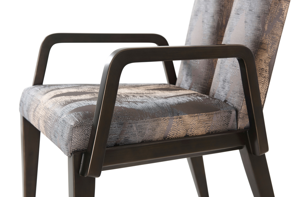 Кресло украшено ручкой моста с бронзовой отделкой, что придает ему уникальный характер и ноту роскоши. Матовая черная масляная бронзовая отделка дополняет образ, придавая креслу современный и изысканный вид.