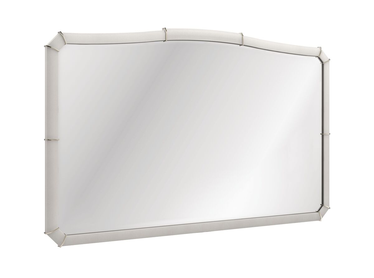 Зеркало Aria - это изысканный предмет интерьера, обтянутый элегантной искусственной шагренью и окрашенный в алебастровый цвет. Его мягко изогнутая дуга вдоль верхней части, красивый скошенный край и металлические вставки цвета шампань придают ему нотку изысканности. Размер зеркала идеально подходит для его размещения над буфетом в столовой, консолью в прихожей или комодом.