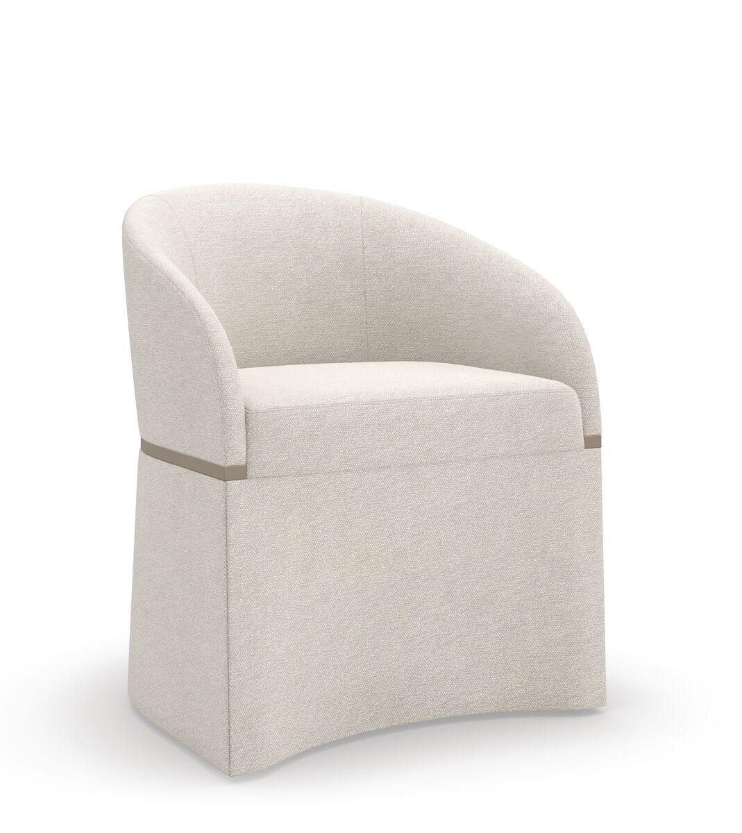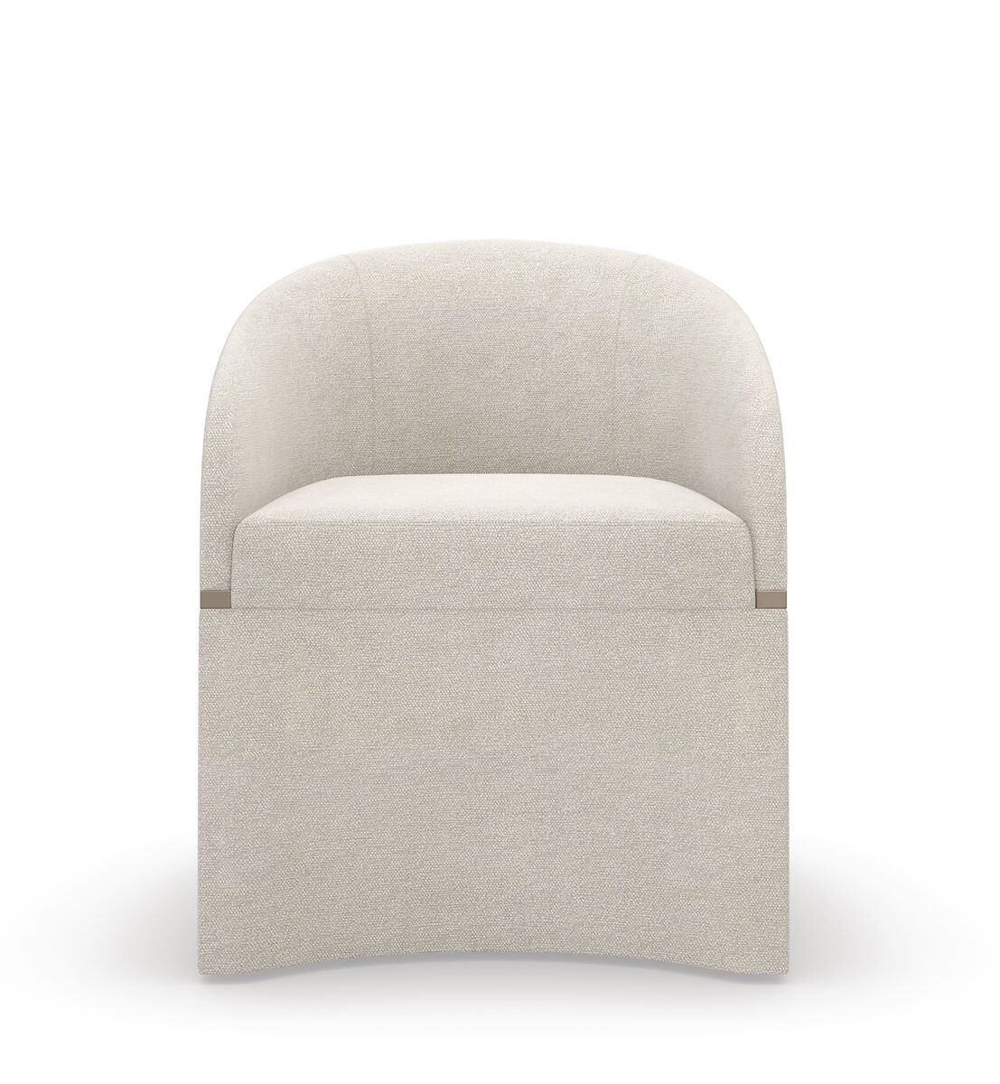 Небольшое акцентное кресло Dune идеально подходит для обеденного стола, письменного стола или туалетного столика. Оно одето в фактурную ткань цвета слоновой кости и скреплено посередине горизонтальной деревянной планкой в отделке Radiant Pearl, придавая ему шарм и изысканность. Вогнутая деталь переднего фартука придает креслу выразительность, а скрытые ролики облегчают его перемещение.