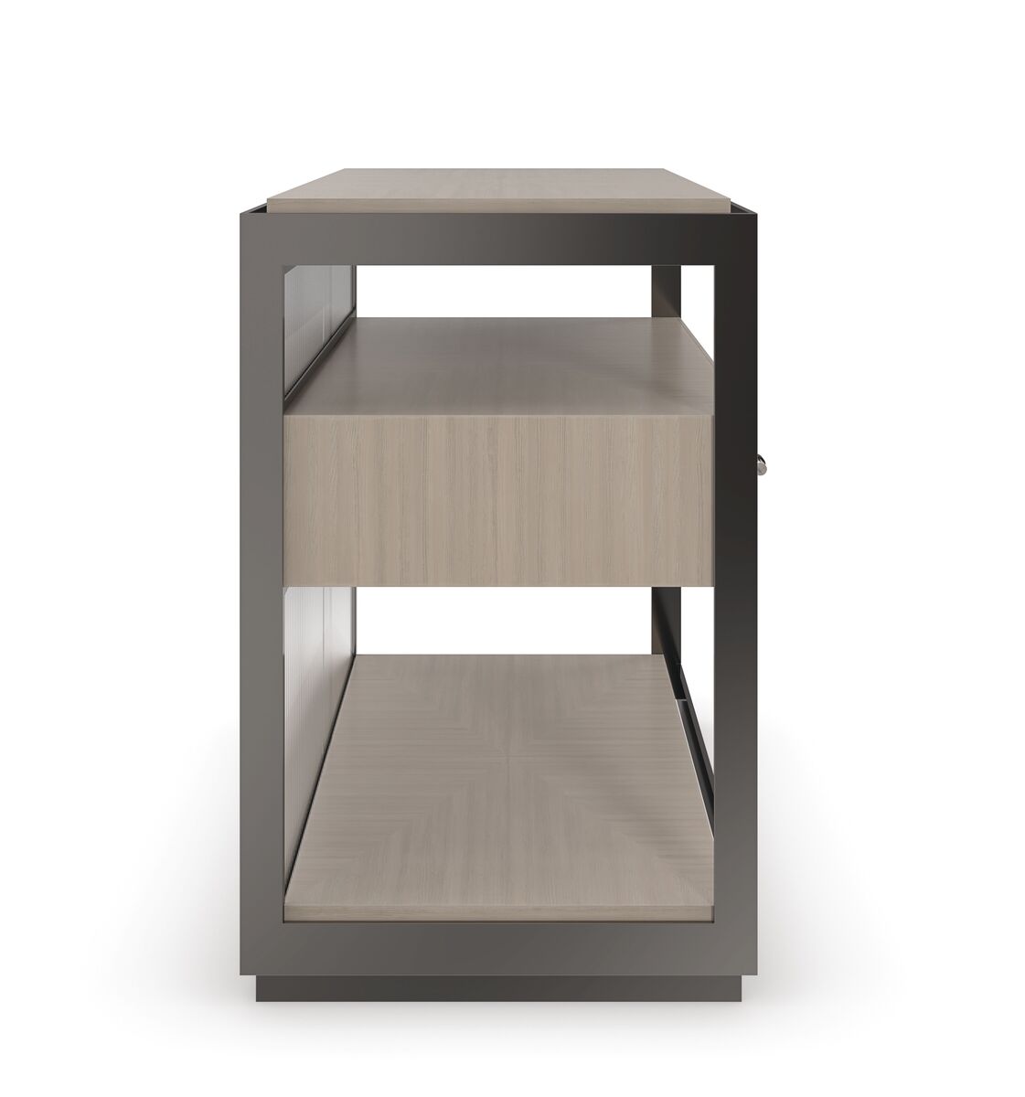 Эта тумба станет стильным акцентом рядом с кроватью, а её универсальный дизайн позволяет использовать её и в других зонах, таких как домашний офис. Для гармоничного завершения пространства сочетайте Falling Waters с этажерами Shelf Life и консолью Shelf Sufficient, создавая элегантное и практичное окружение.