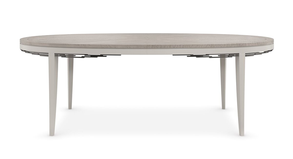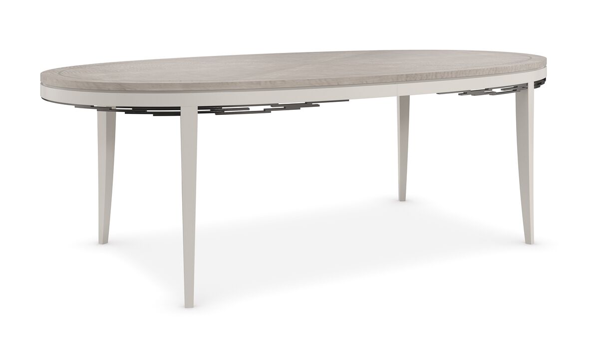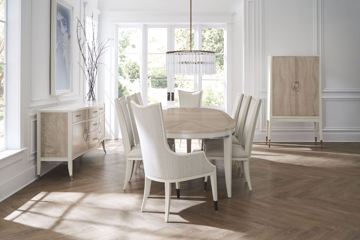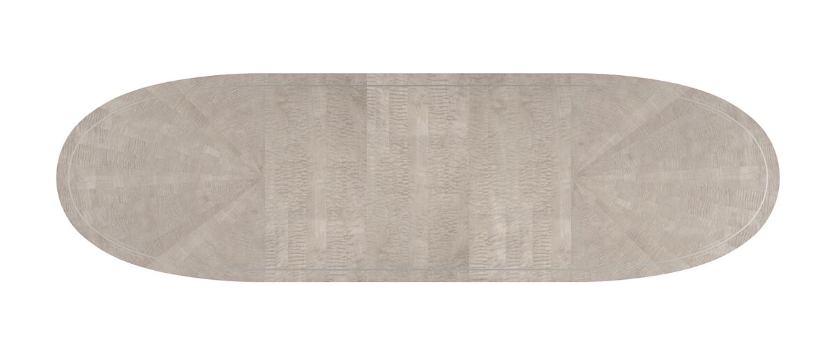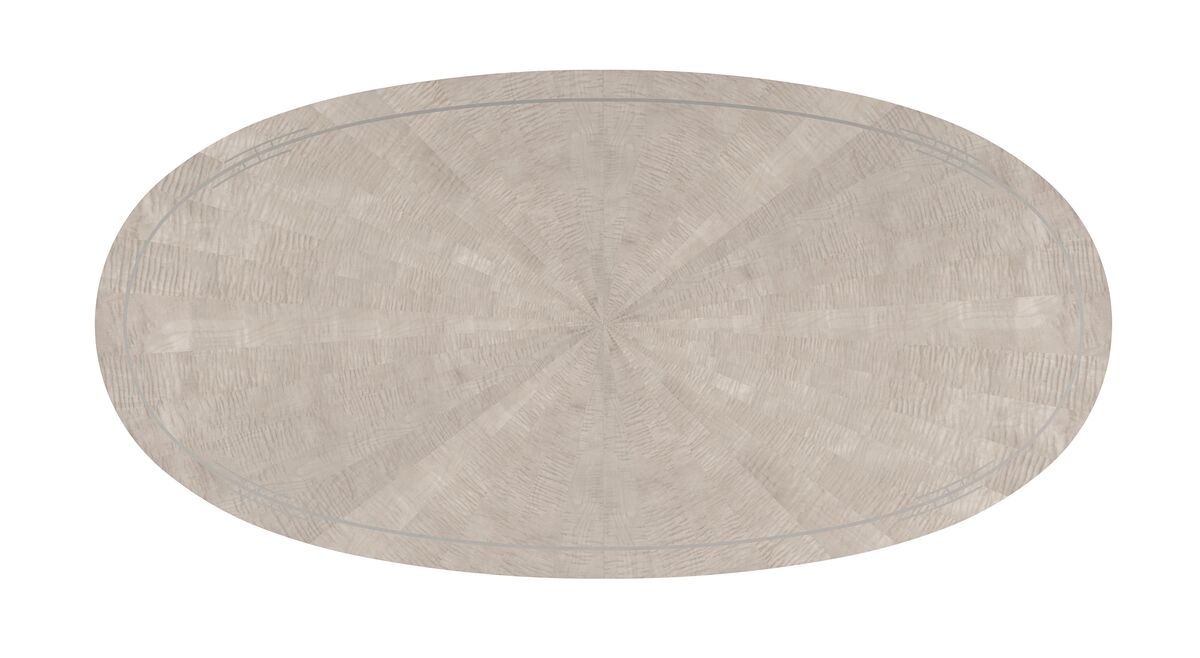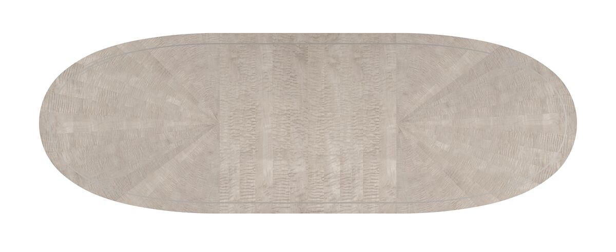 Роскошный овальный обеденный стол Coronet производит элегантное впечатление благодаря изысканному узору "pie" на столешнице, выполненной из серого вьющегося клена. Нейтральная отделка "Chinchilla" придает светлым оттенкам древесины зернистость, которая деликатно дополняется полосками мягкой серебристой краски, создающими шелковистый эффект и повторяющими декоративную металлическую резьбу под фартуком. В комплекте поставляются три створки по 56 см, которые легко расширяют стол, чтобы разместить до 12 гостей.